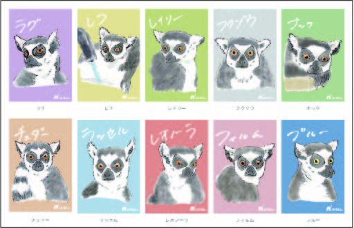 NIFREL で暮らす10 頭のワオキツネザル達がキュレーター直筆イラストでマグネットになりました。