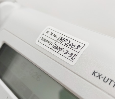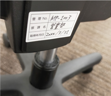 備品や資産の管理ナンバーや管理部署を手書きで書き込めるシール。