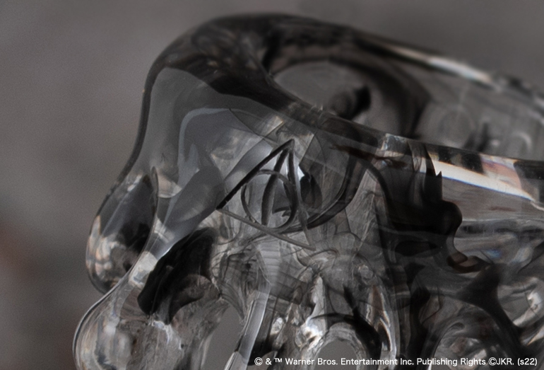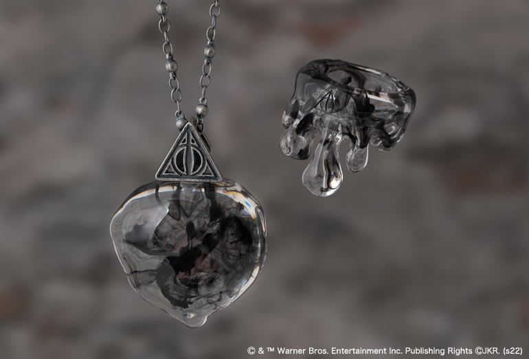 魔法族のこどもたちの抑圧された闇の⼒・オブスキュラス。暴⼒や苦痛に満ちた怒りなどから出現し体内から放出される強⼤なエネルギーのオブスキュラスを、死の秘宝のマークが施された透明な器に封じ込めた「キャンディ」ネックレスとメルトリングが誕生。漆黒の濃い霧のようでもあり、液体のようでもある、⼀定の姿形に留まらない闇の⼒。ニュート・スキャマンダーがトランクの中に保護していたオブスキュラスとリンクするストーリーテリングな作品。