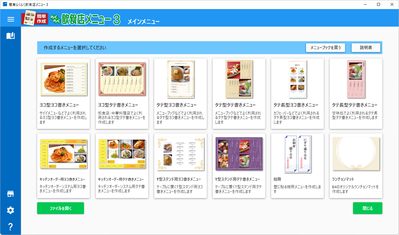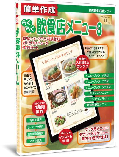 飲食店向けメニュー表作成ソフト 簡単作成らくらく飲食店メニュー3 を発売開始