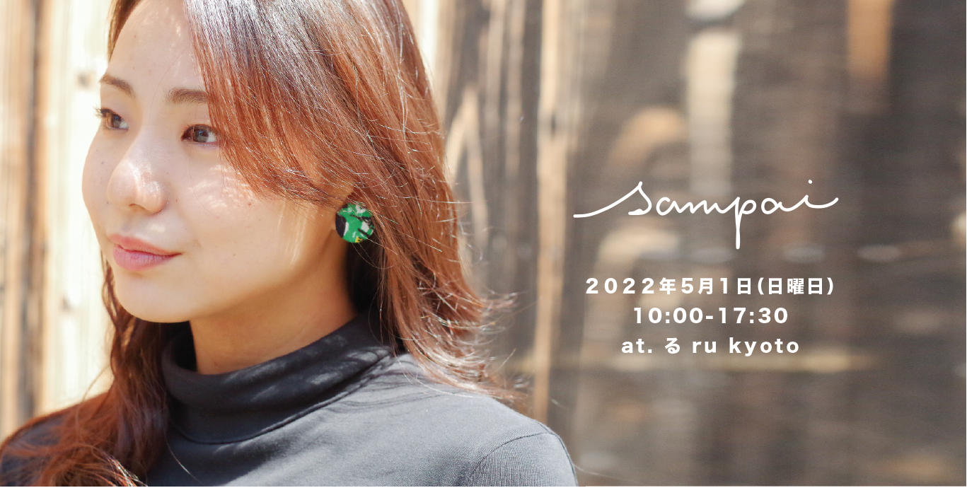 京都西陣を拠点に伝統・地域産業と協力し、産廃を活用したアップサイクルのハンドメイドアクセサリーを製作する「sampai(さんぱい)」(運営:頼-tano- 代表:宮武愛海)が、京都市下京区の町家リノベーションアートギャラリー「る ru kyoto」で開かれる【kyotsunagu】に出店。ゴールデンウィーク中の2022年5月1日(日曜日)10:00-17:30 の間、イベント会場内で販売を実施。これからの季節に活躍する、アフリカンバティックや鮮やかな色味のハンドメイドアクセサリーを取り揃え、その場でイヤーパーツの付け替え等に対応する。