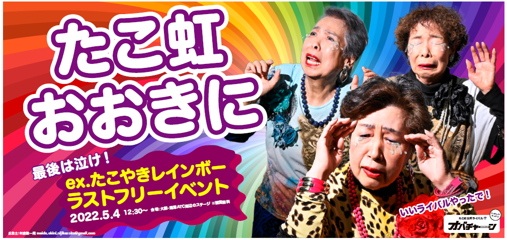 ●企画を立ち上げた私達ファンからのお願いに「たこやきレインボーのために」と、無償でご協力くださったオバチャーンさん、そして大喜利企画ポスターに登場してくださったスペシャルゲストさん、また、期間が短い中「#たこ虹大喜利」に参加してくださったたくさんの虹家族の方々。皆様のおかげでこの何ともド派手な応援広告の掲出が叶いました!心より感謝申し上げます。