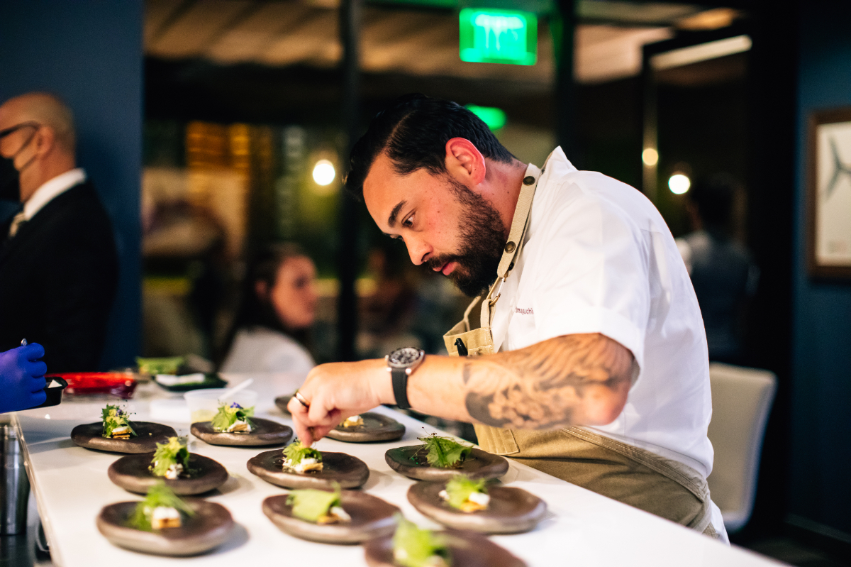 エスパシオ ザ ジュエル オブ ワイキキのメインダイニング「無限」をプロデュースするのは、エグゼクティブシェフのジェイソン・ヤマグチ。これまでにジョアキム・スプリチャル、マイケル・ミーナ、クリス・ガーニアといった名だたるシェフの下で腕を磨き、フランス人の母と日本人の父、それぞれの食の伝統から着想したオリジナルの先進的なスタイルを確立してまいりました。