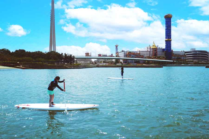 大阪北港マリーナのマリンアクティビティでは、「SUP」と「ベイセーリング」を体験できます。いつもと違う海の上からの視点はとても新鮮です。海上から見る美しい大阪の海のサンセットを満喫していただけます。