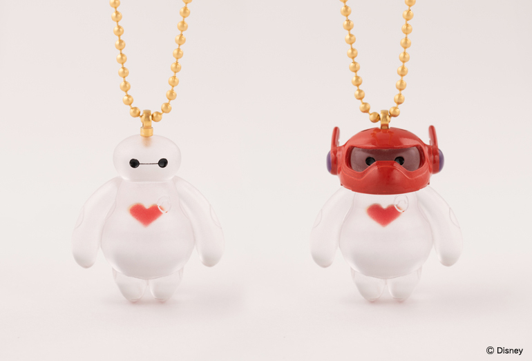 “ベイマックス”がいつもあなたの側に。半透明なボディが本物そっくりの「キャンディ」ネックレスは、優しいハートの持ち主である “ベイマックス”をイメージして真っ赤なハートを封じ込めたデザイン。付属のヒーローアーマーのヘッドチャームを付ければ心と体を癒すためのケア・ロボットからヒーロー姿の“ベイマックス”にも変身!身に着ける度にあなたに癒しを与えてくれそう。