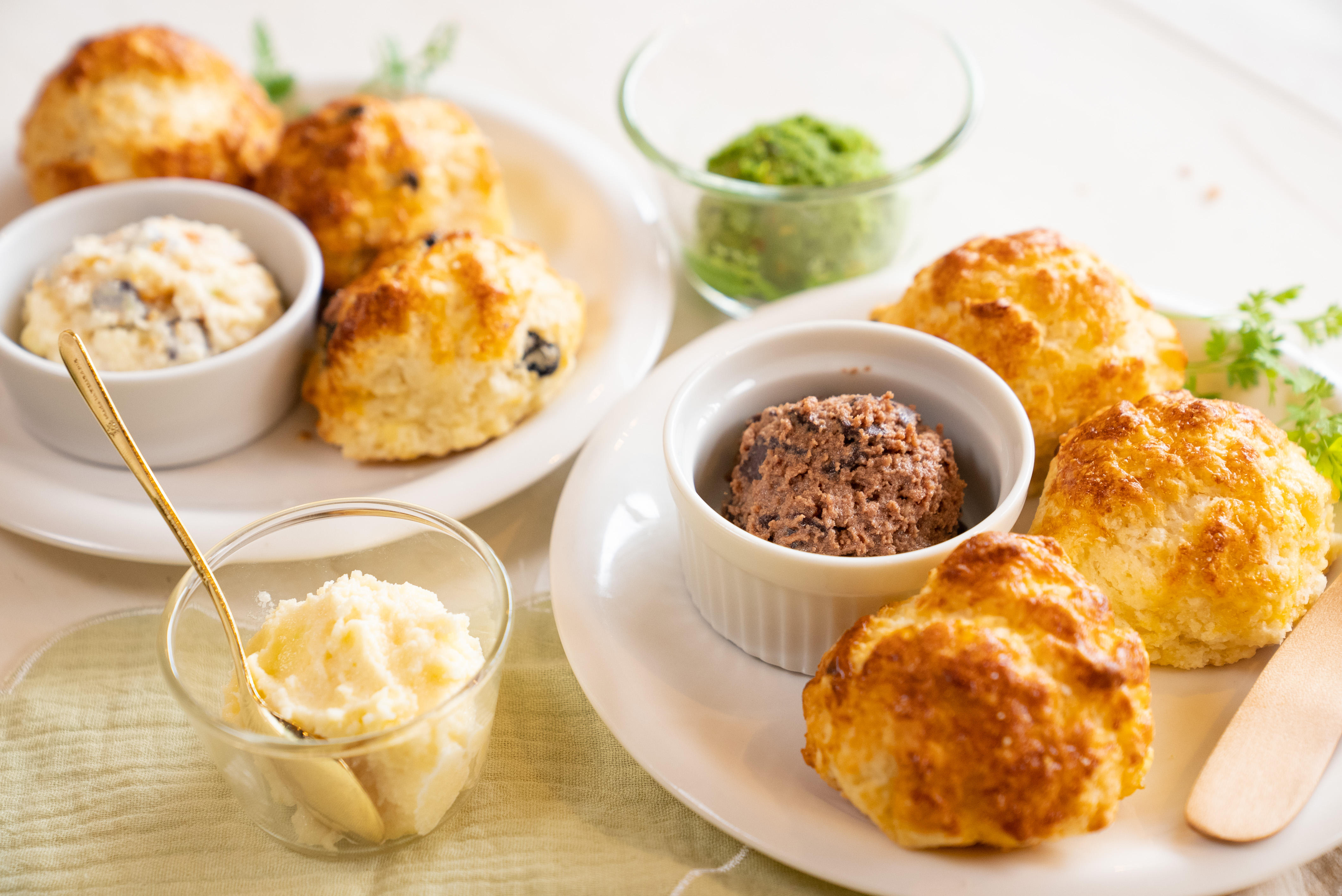 ■店内で焼き上げるスコーンとカラフルなフレーバーバター、お手軽にアフタヌーンティーパーティーを