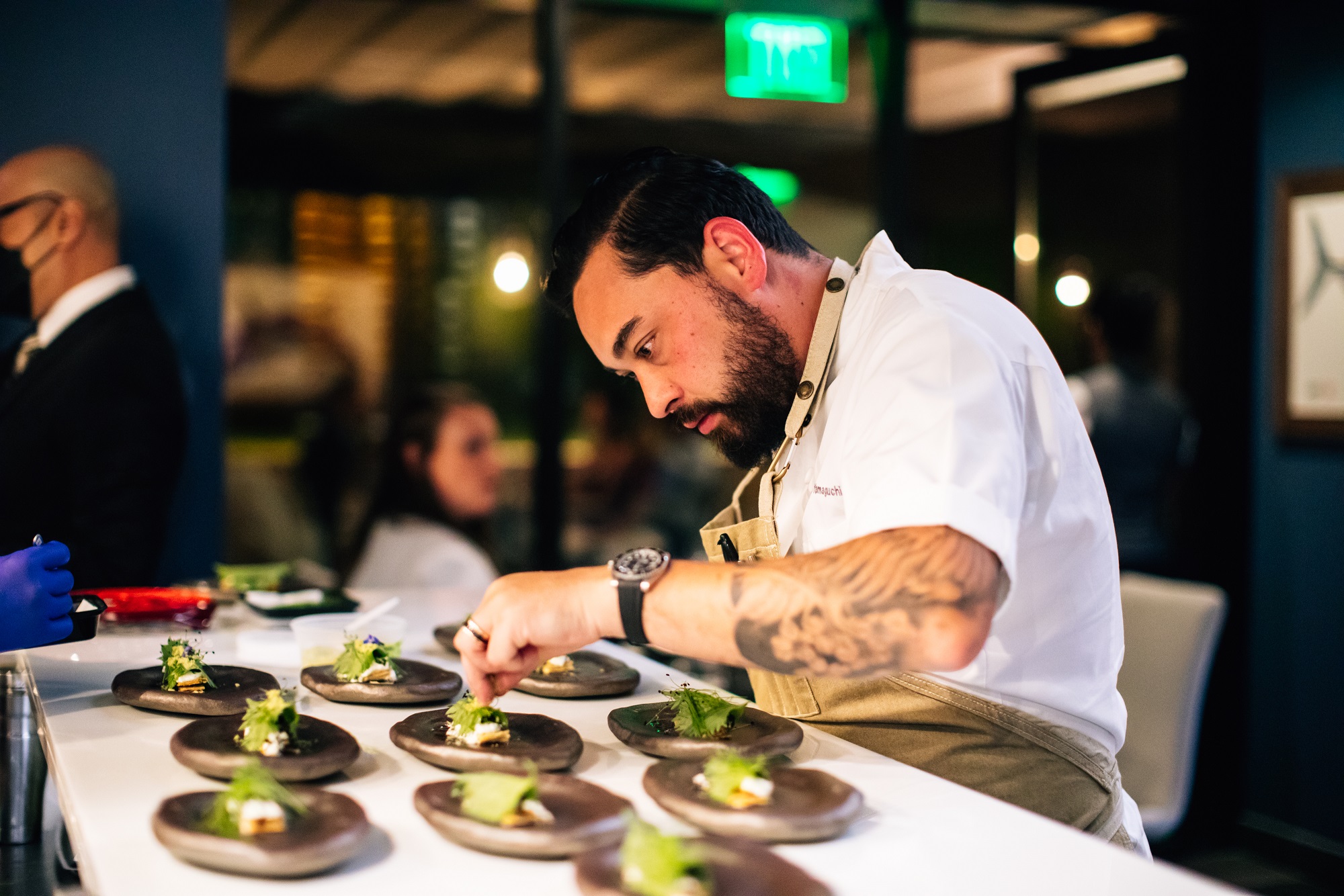 メインダイニング「無限」は、その名が示すとおり、選び抜かれた食材とお飲み物のマリアージュにより生み出される、インスピレーション溢れ無限に広がる食体験をお届けしたい、という想いから名付けられました。フレンチと和食のフュージョン料理をメインコンセプトとし、ハワイ州のトップシェフの一人であるジェイソン・ヤマグチが生み出す極上の一皿には、ハワイの提携農家で採れた地元の作物や、日本の和牛を始めとした世界中から厳選された最高品質の食材が用いられています。当レストランでのみお楽しみいただくことのできる希少性の高いワインとともに心ゆくまでご堪能ください。