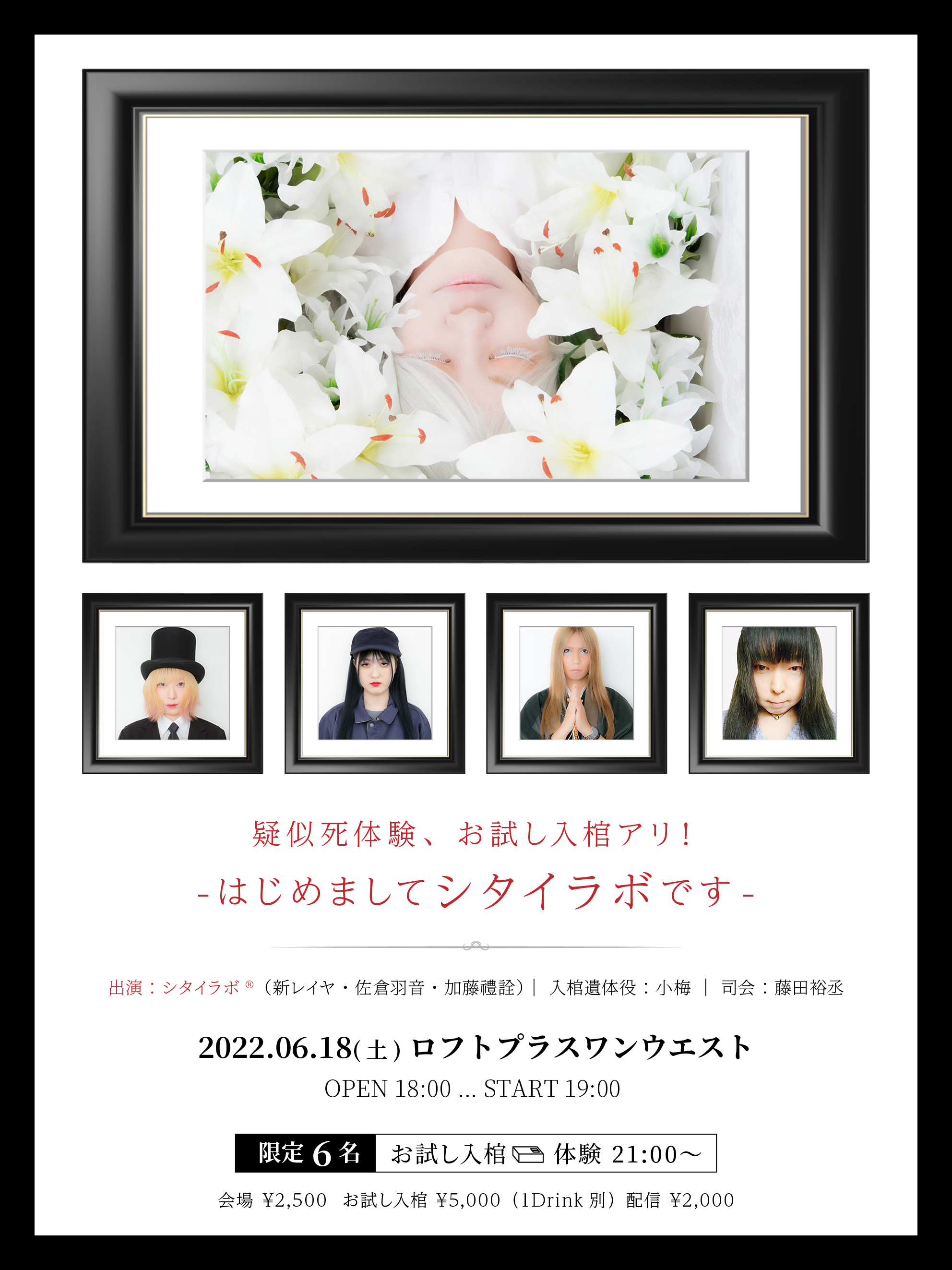 擬似的な死や死体への変身体験を提供するサービス、逆転変身専門店シタイラボは、2022年6月18日(土)にロフトプラスワンウエストにて「擬似死体験、お試し入棺アリ!-はじめましてシタイラボです-」を開催します。