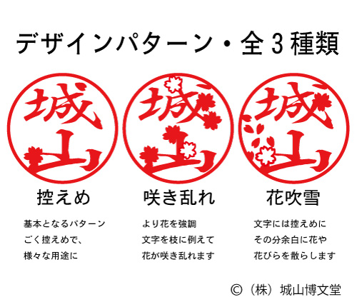 3)花吹雪:上記控えめを元に、名前と外枠との余白に、花や花びらを舞い散らせたようなデザイン