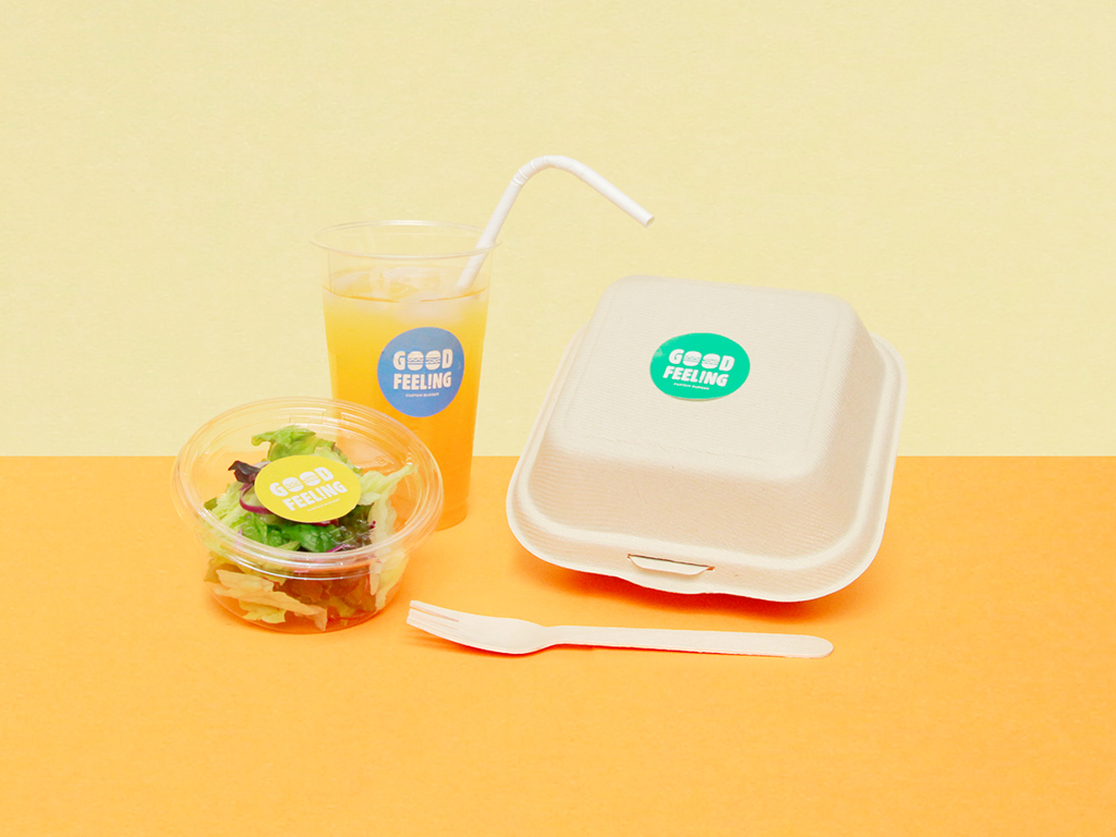 「お客さまにおいしそう!を届けよう。」をコンセプトに、20万種類以上あるテイクアウト・デリバリー用容器から機能、デザイン、コストにこだわった約170種類を厳選してそろえました。スマホからオリジナルデザインを印刷したシールや包装紙、紙袋、ショップカードなども小ロッドから発注できます。無地の容器にオリジナルシールを貼るだけで、コストを抑えながらもお客様に店舗のブランド認知を高めることができます。