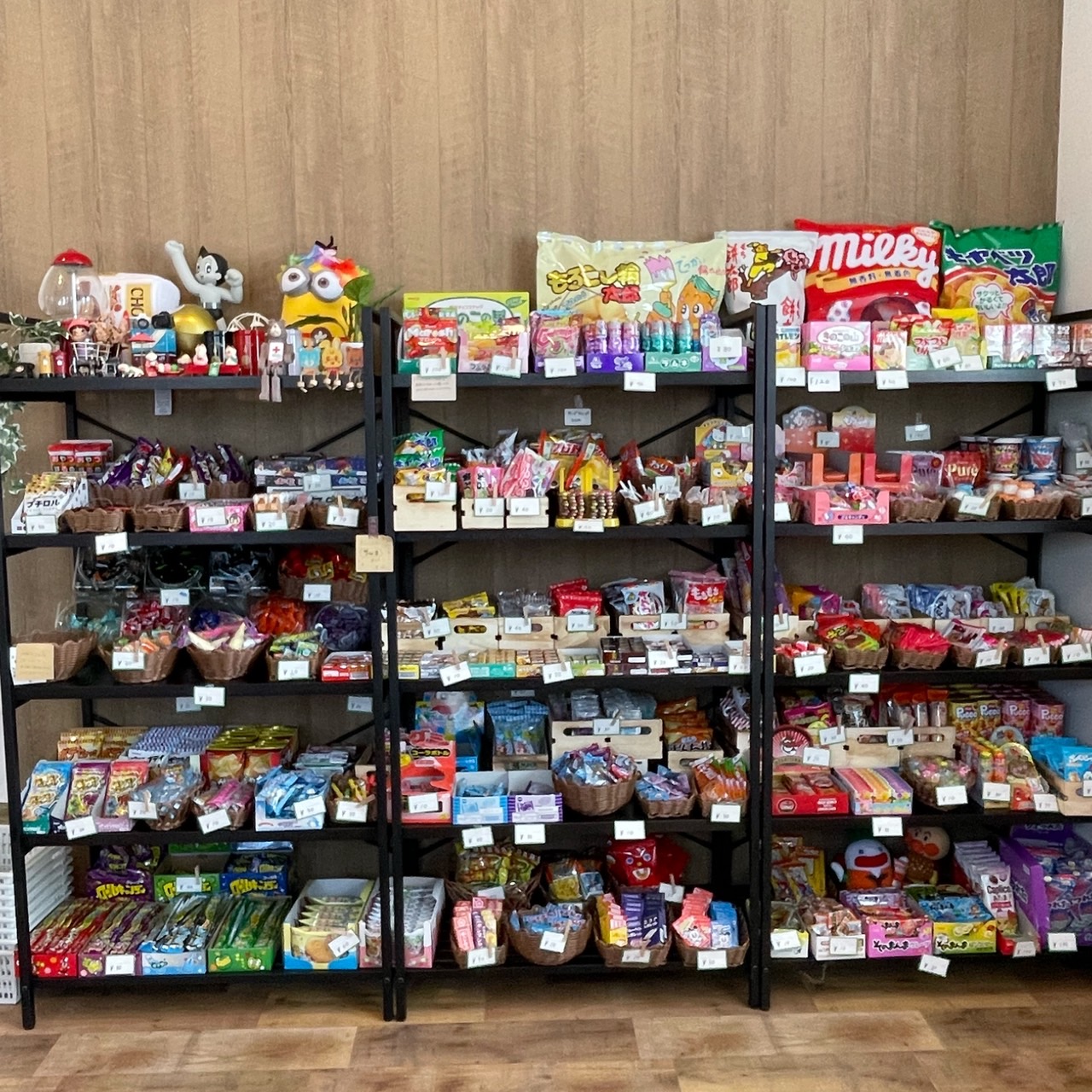 長年お好み焼き屋さんを営んできた母と、2人の娘で営むカフェです。広々とした店内には、テーブル席とソファ席のほか、懐かしいものから珍しいものまで150種類以上が並ぶ駄菓子コーナーが設置されています。