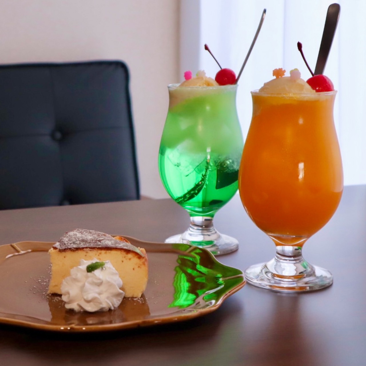 もう一つはメロンクリームソーダをイメージした「メロンクリームかき氷 600円」。ふわふわ氷の上にメロンシロップ&とろりミルククリーム、そしてバニラアイスとさくらんぼをトッピングしています。メロンシロップはいちご、ブルーハワイに変更もできます。