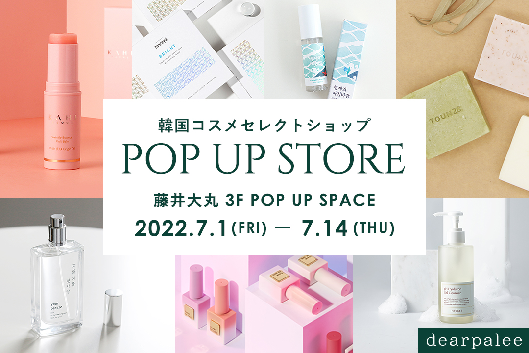 コスメを中心に韓国の厳選アイテムを揃えるセレクトショップ「dearpalee(ディアパリー)」の京都初となるポップアップストアを、7月1日(金)~7月14日(木)まで藤井大丸にて開催いたします。