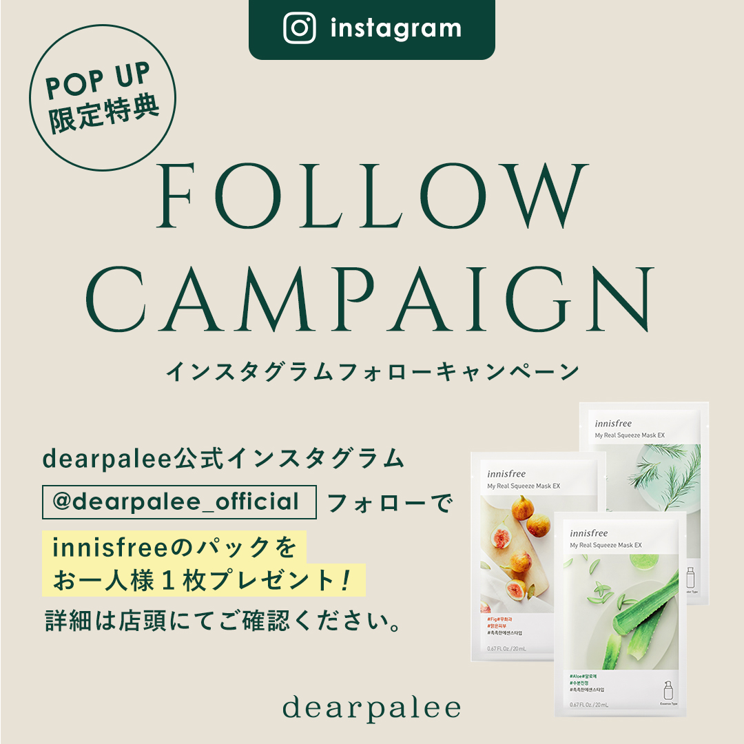 ポップアップストア店頭にて dearpalee 公式 Instagram をフォローしていただいた方に