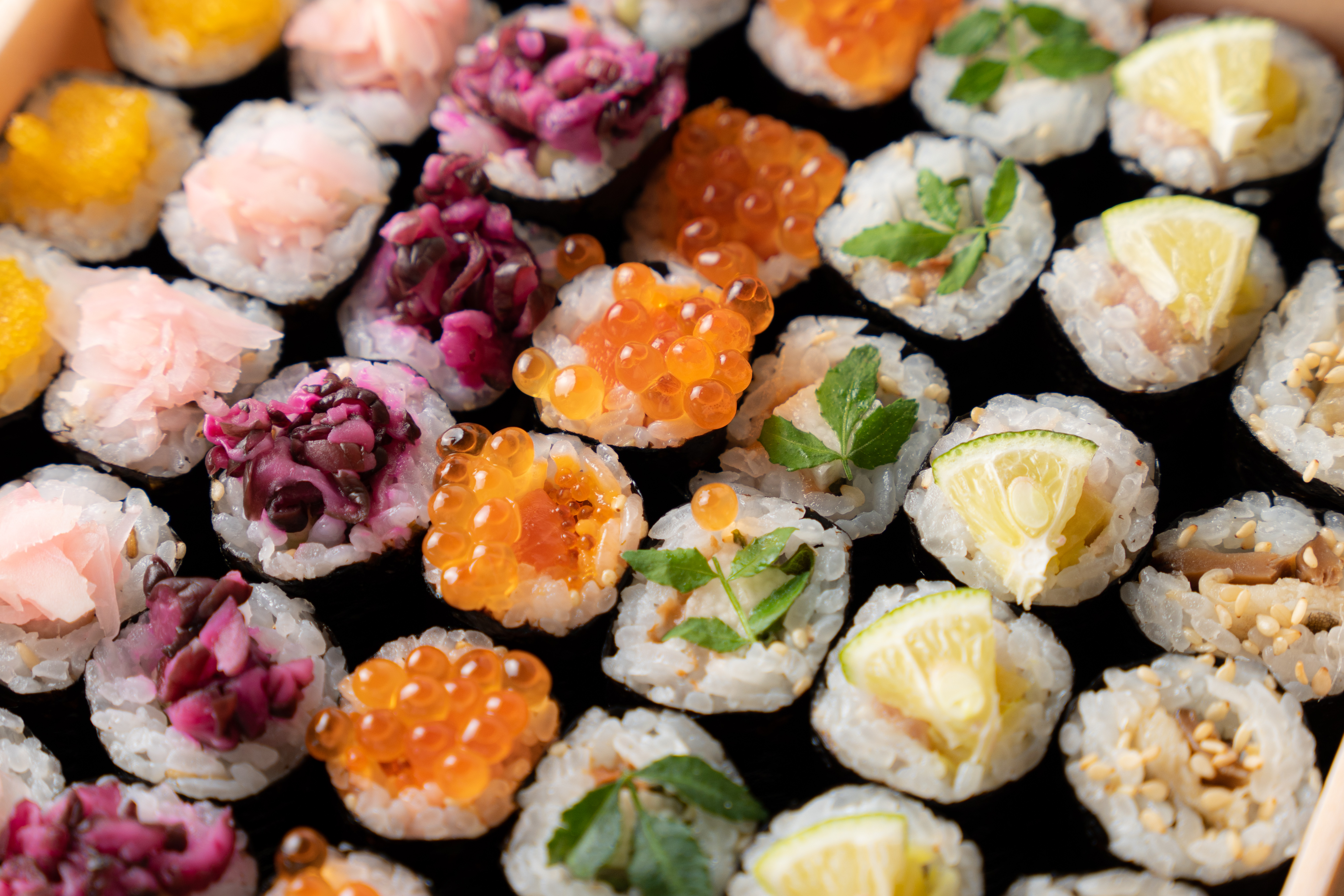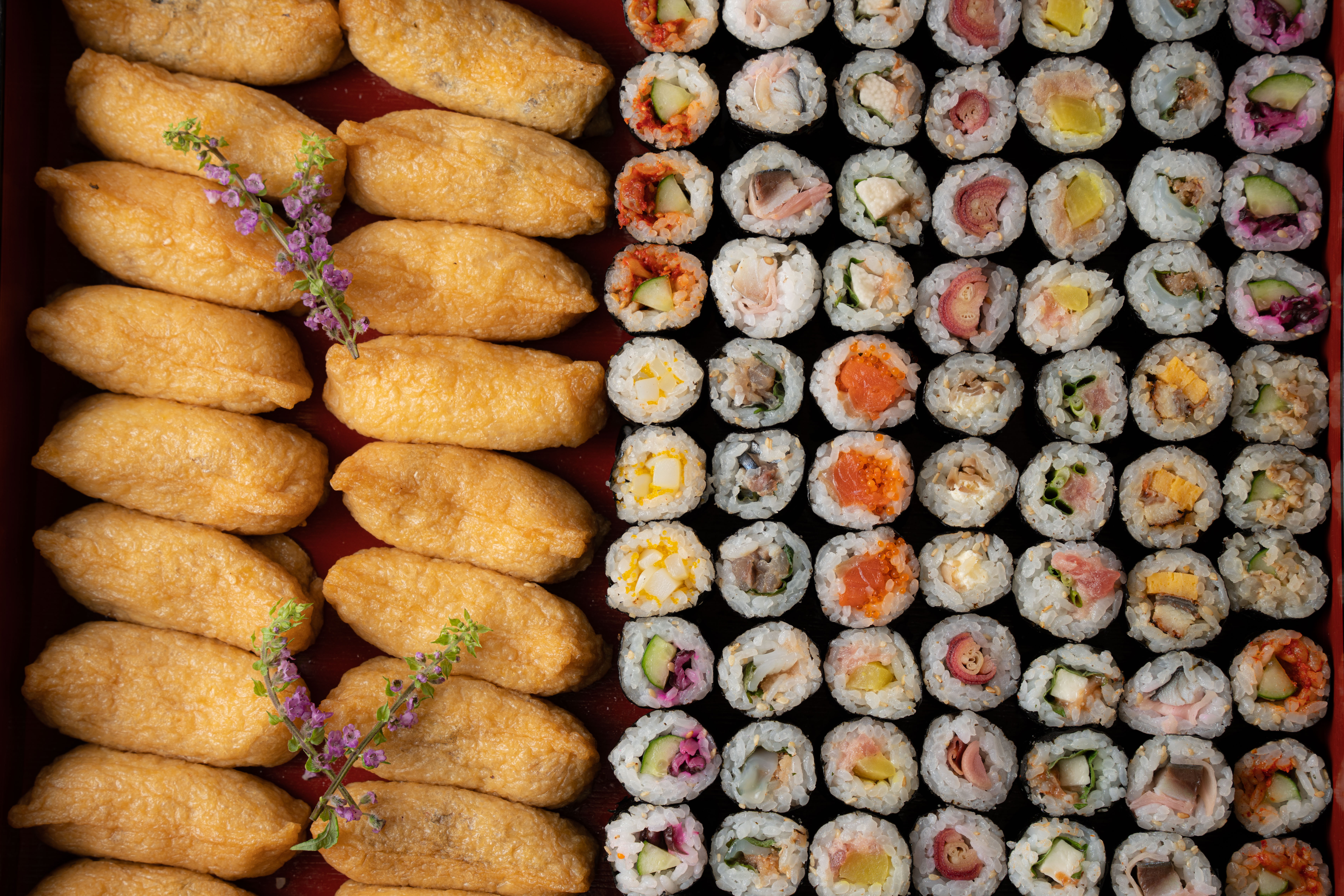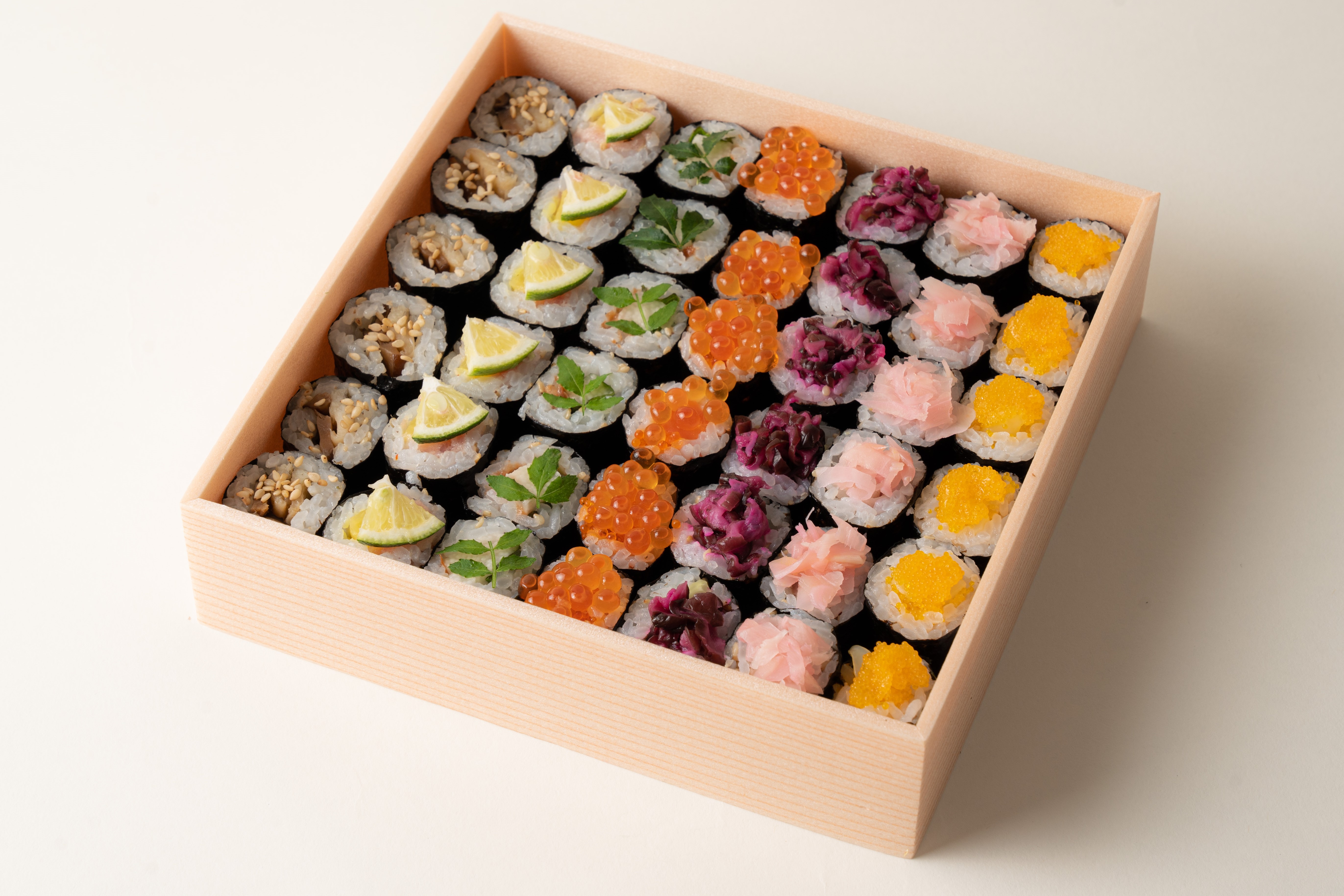 当社が2019年にプロデュースした「一口いなり むろや」は女性を中心に人気を集め、現在は大阪に3店舗、兵庫・福岡にそれぞれ1店舗を展開しています。むろやの知見を生かしつつ、新たなブランドを立ち上げるにあたって「巻き寿司」に着目しました。大阪で巻き寿司というと、恵方巻き=太巻きのイメージが定着しています。しかし恵方巻きを1本食べるのは量が多く、飽きてしまいます。そこで「細巻き」を看板商品にメニュー展開することを考えました。