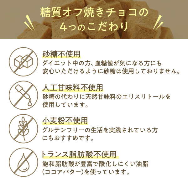 この糖質オフ焼きチョコには、4つのこだわりがあり、