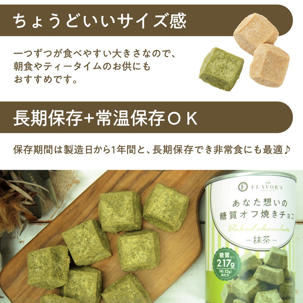 糖質オフ焼きチョコの味は、2種類。宇治の和束町の東茶園の茶葉を使った抹茶味と、