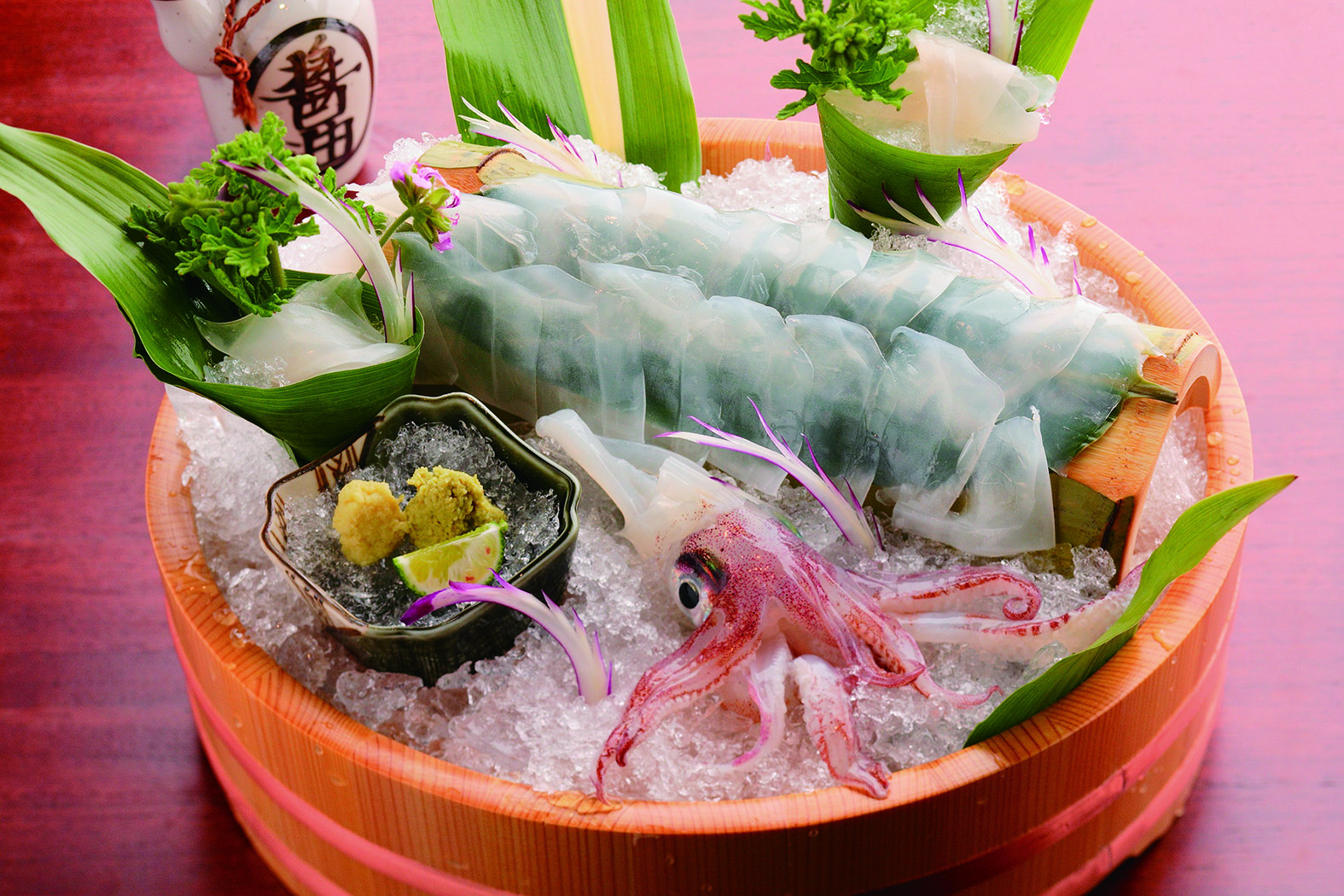 泳ぎイカのお造りは、通常100グラムあたり2,070円で販売していますが、200グラム以上のイカが泳ぐ水槽からどのイカを釣っても価格は変わりません。大きなイカに狙いを定め、お得に新鮮なコリコリ食感を味わっていただきたいと思います。 ※価格は全て税込みです