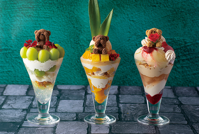 大阪・リンクス梅田1階にある、フルーツパーラー+ベーカリーSeason&Co.では、人気のくまチョコと、シャインマスカット、マンゴー、桃など夏の旬なフルーツを使用したプチボナールパフェが登場!