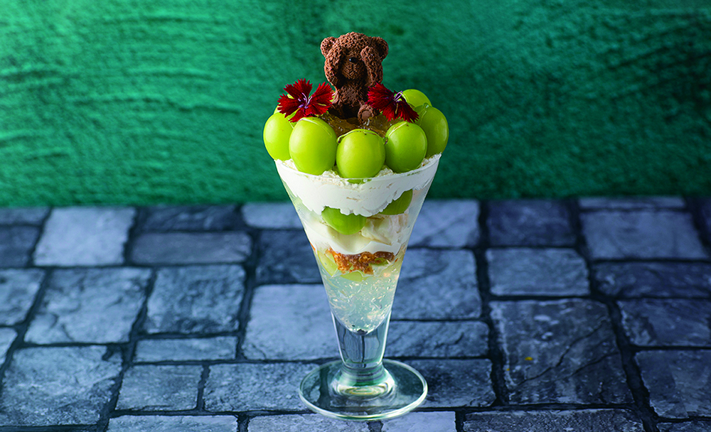 白ワインに甘くジューシーなシャインマスカットをあしらったパフェ。