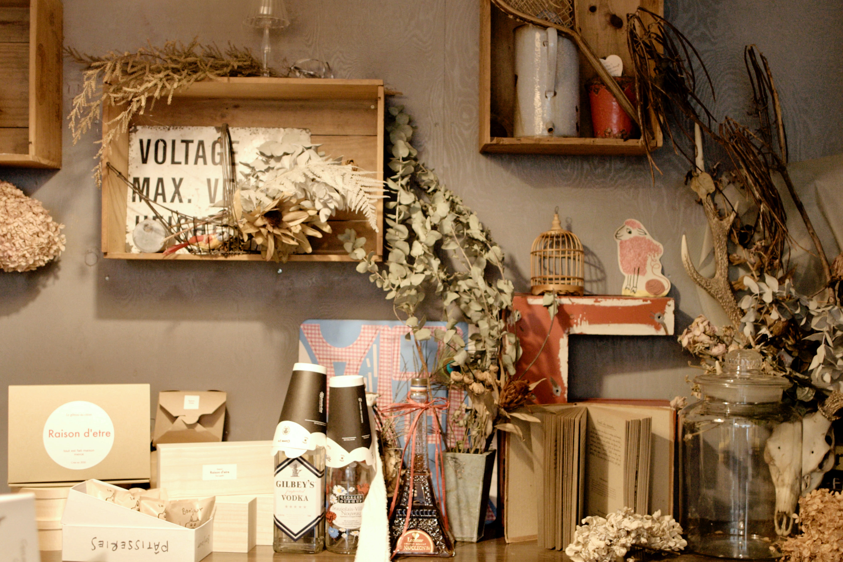 店舗はパリの街角に昔からある焼き菓子店をイメージし、パリから取り寄せたアンティーク雑貨をいたるところに飾り付けています。ご来店いただいたお客様に、パリにいるような雰囲気をお楽しみいただきたいと思います。