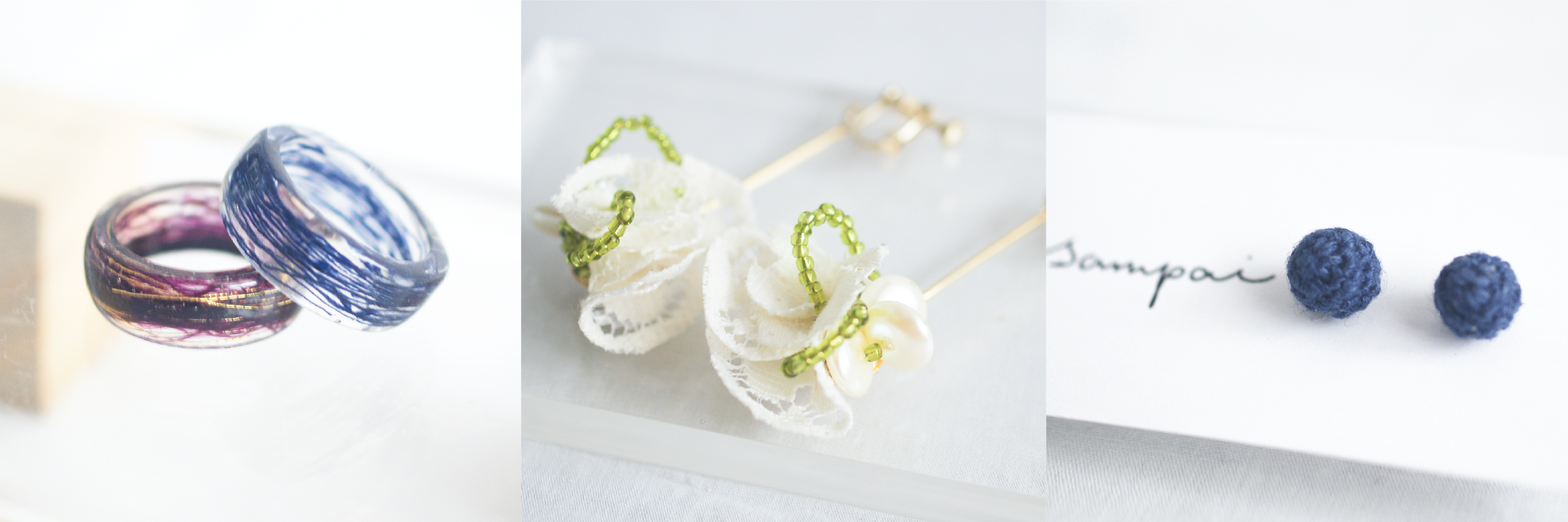 sampaiでは、伝統産業に関わる職人や文化性を直接話して知ってもらうため、多くの商品を通販ではなく対面限定で販売。今回の横浜高島屋POP UPでは、西陣織の絹糸(先染め)を使用した商品を中心に新作のアクセサリーや指輪などを販売予定。