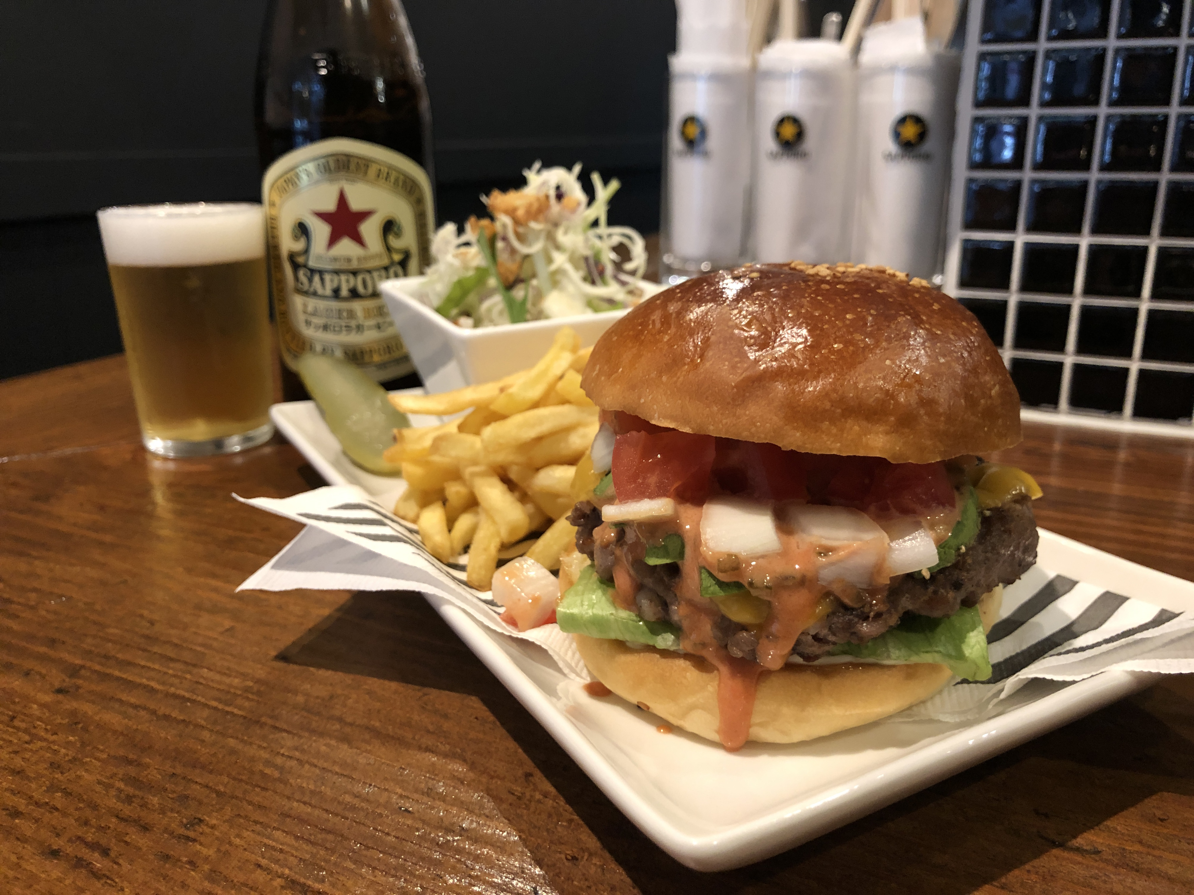 カウンターメインで店内13席(外に立ち飲みブースあり)の小さな酒場です。上記タイトルにもありますように本格グルメバーガーと大衆酒場にありそうな安心する多様なお酒と肴がウリの二刀流ハイブリッドスタイルのバーガー酒場で、営業時間内は通しでバーガーも一品もお酒も変わらず提供しておりますので、テイクアウトはもちろん、ランチ客から昼飲み客、アイドルタイムのカフェ客や一人飲み客、夜の宴会からバーガー〆まで多種多様なお客様にご利用いただいております。