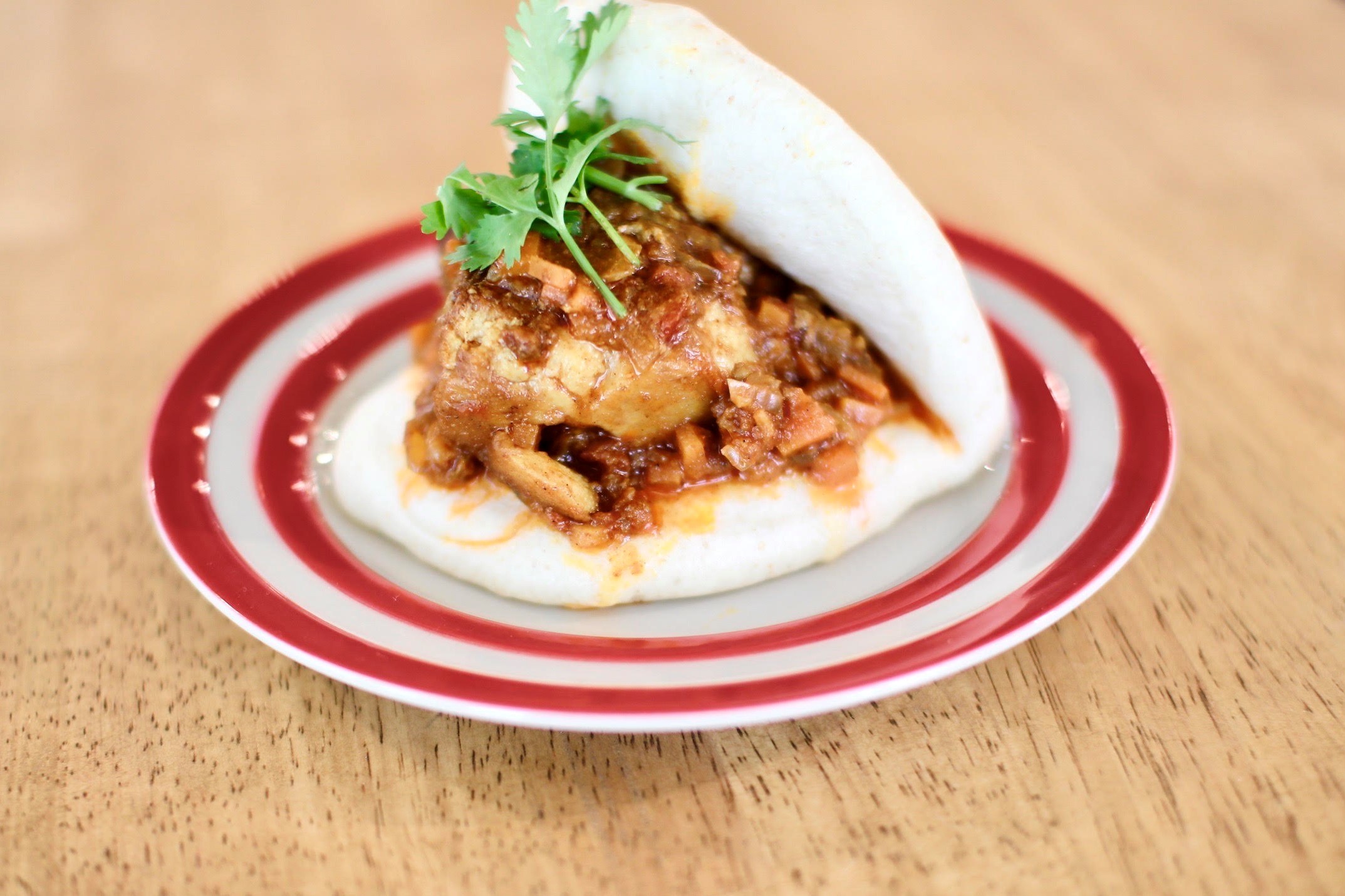 スパイスカレー風味の長崎芳寿豚の角煮をはさんでいます。