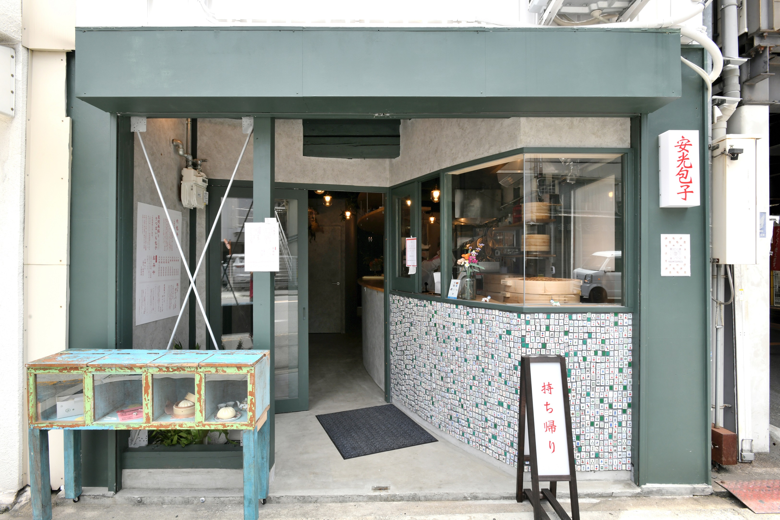 「安光包子」は、全て手作りで国産食材にこだわった大阪のファストフード“肉まん”の専門店です。店舗は、若者でにぎわう中崎町にあり、麻雀パイを壁一面に貼り付けた店舗が目印です。ガラス張りなので、蒸しているせいろも通りからご覧いただけます。