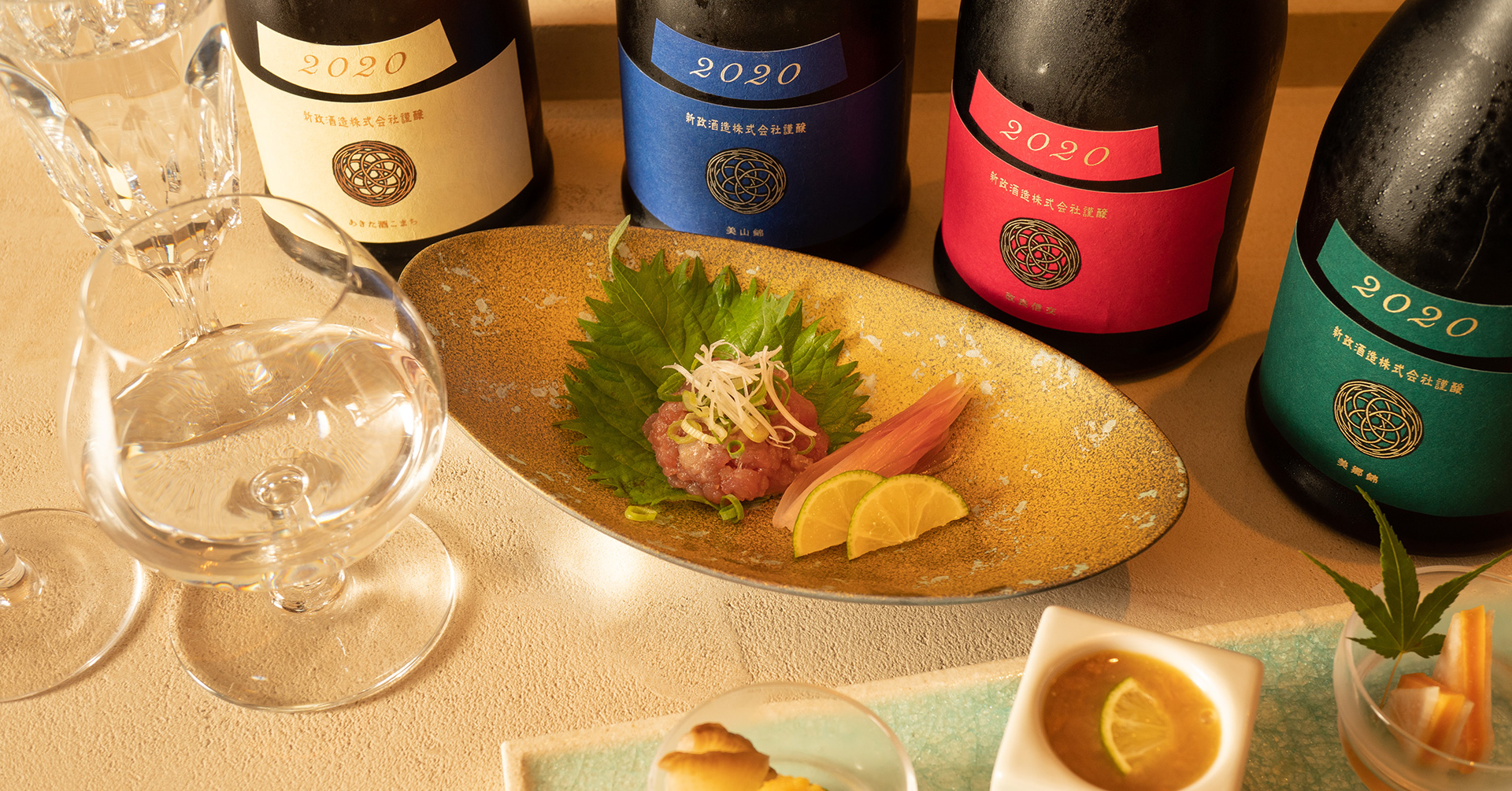 希少な日本酒、豊富なワインコレクションにシャンパンなどを取り揃え、「鮨と肴と酒のペアリング」が根底にある鮨 岩屋にとって、常に挑戦的・革新的な日本酒をリリースし日本酒業界に一石を投じてきた新政酒造の酒はなくてはならないものです。