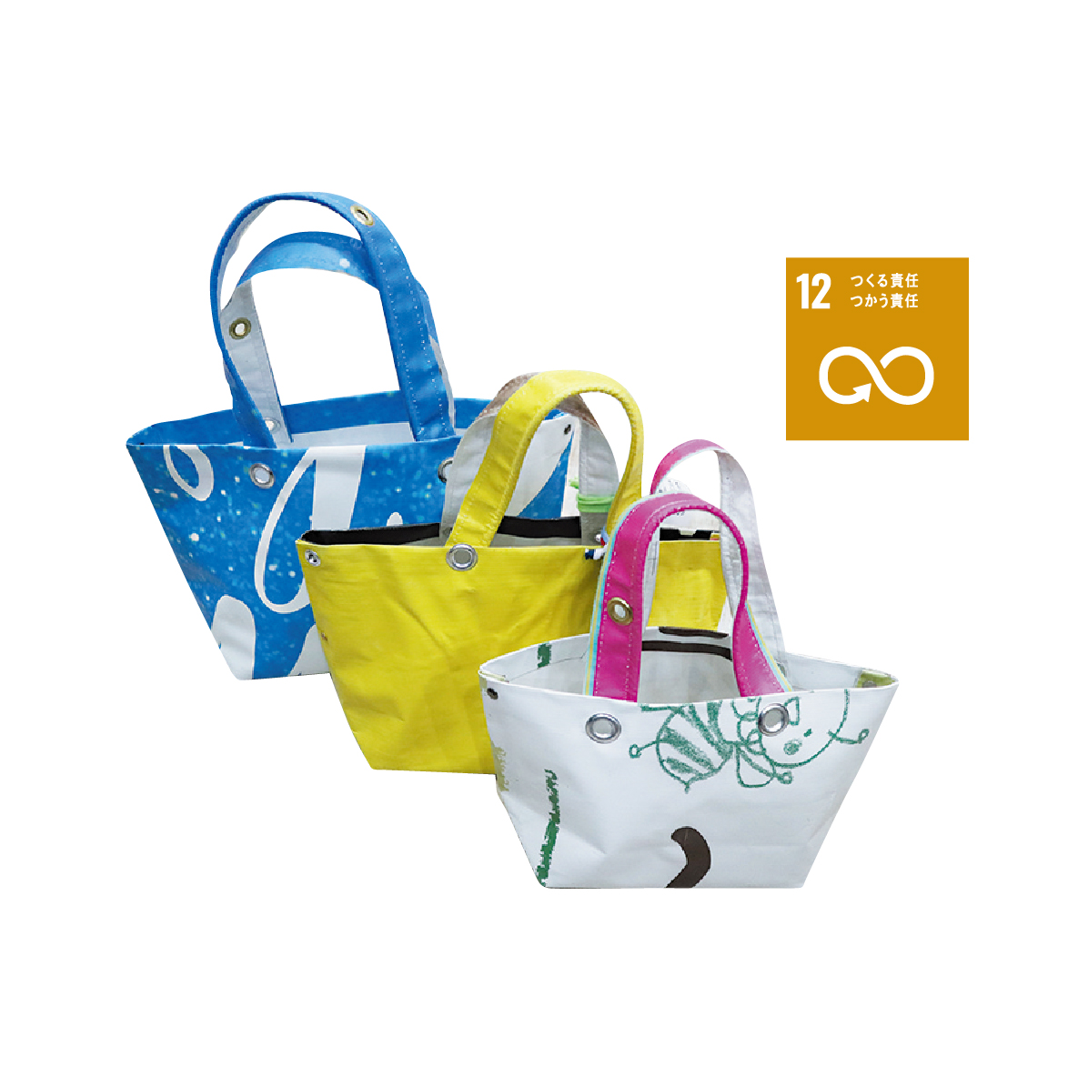 ・使用済みのテント布でマイバッグを作ります。環境に優しいリユース素材で