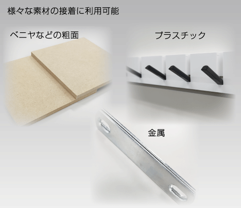 接着・ベニヤ板・鉄などの粗面に対しての接着に利用可能。