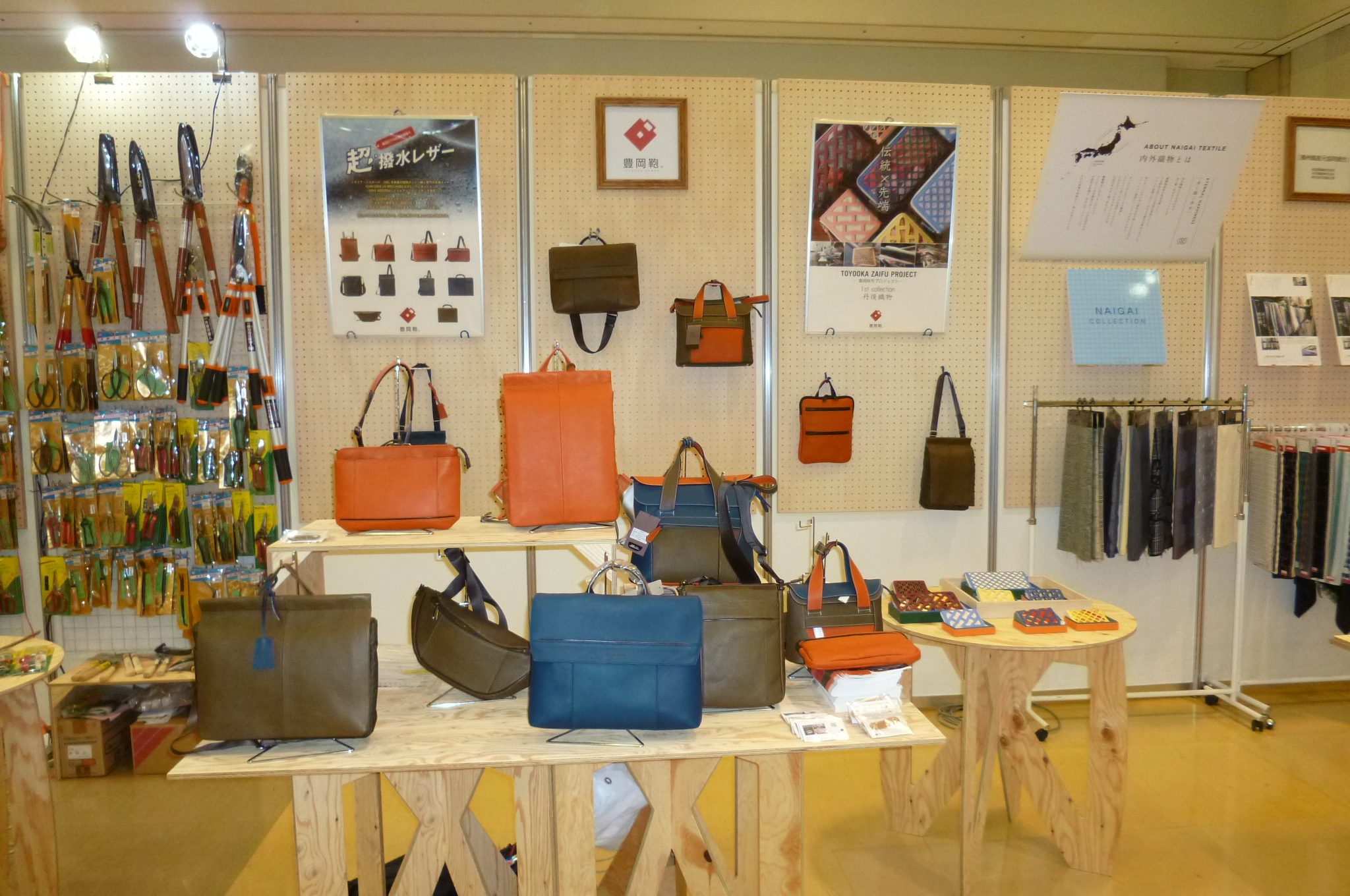 今展においては、当組合に属するメーカー10社が参加。豊岡市は「海の恵みと暮らすまち」です。当組合では未来に美しい海をつなぐため、2021年より廃棄漁網を使ったバッグの製造・販売に取り組んでいます。今展では環境性能と機能性を両立させたスクールリュック「UMI」などを展示し、幅広い方に豊岡鞄の技術力や魅力を感じていただける内容となっています。