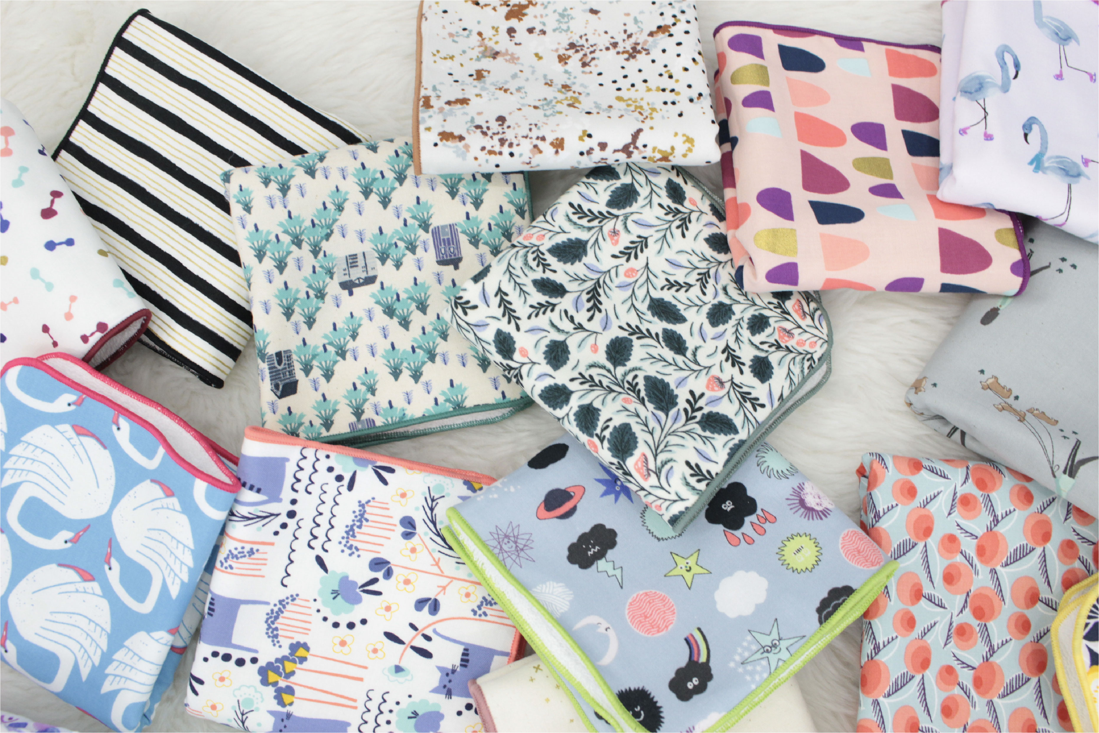 アメリカ人デザイナー“メロディーミラー”が手掛ける個性的なプリント生地を使った両面加工のハンカチタオル。