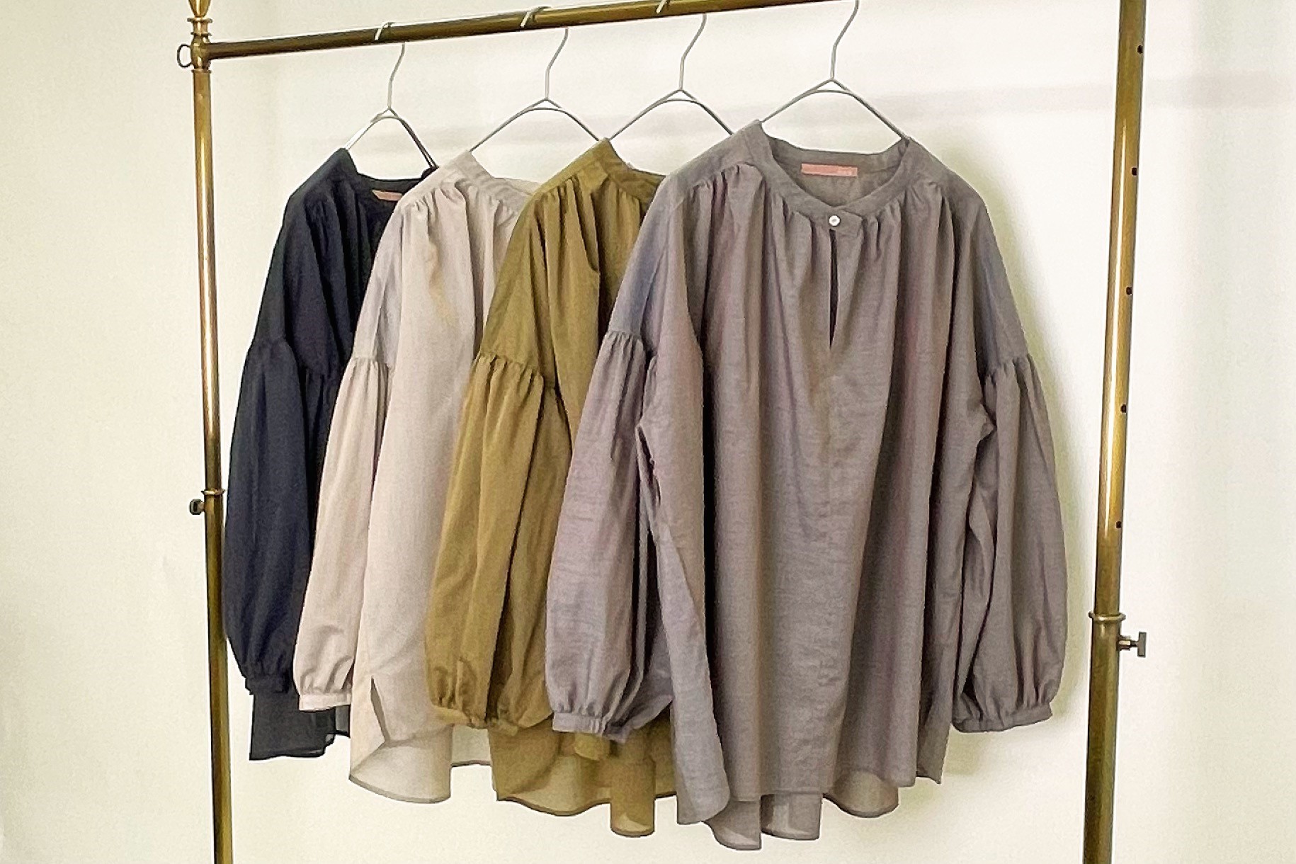 オーガニックコットンとリサイクル糸で編み立てた国産生地を使用。たっぷりのギャザーで柔らかな雰囲気に。
