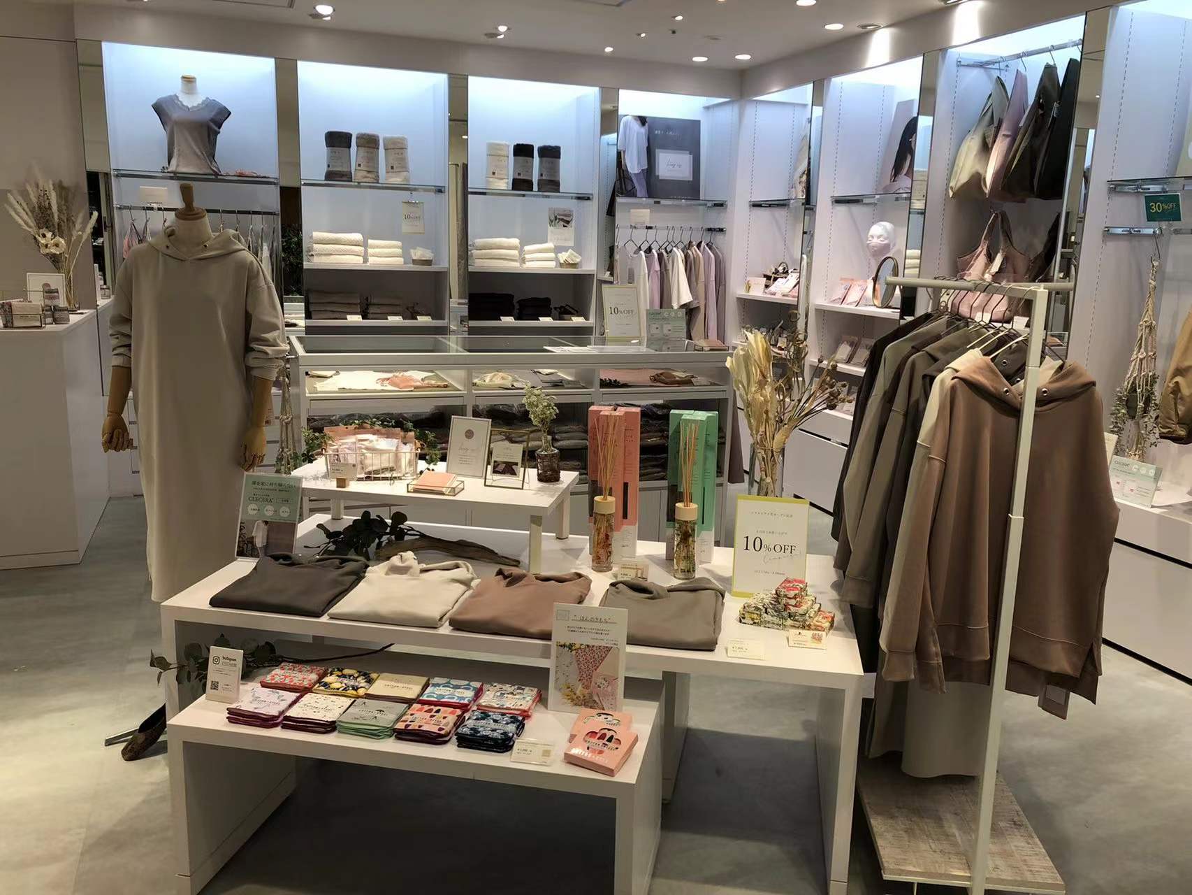 梅田の期間限定店には、ワンマイルウエアやテレワークにおすすめのTシャツやカーディガンなどのウエアをはじめ、マスク、タオル、バッグなどの雑貨まで47種類の商品をご用意。