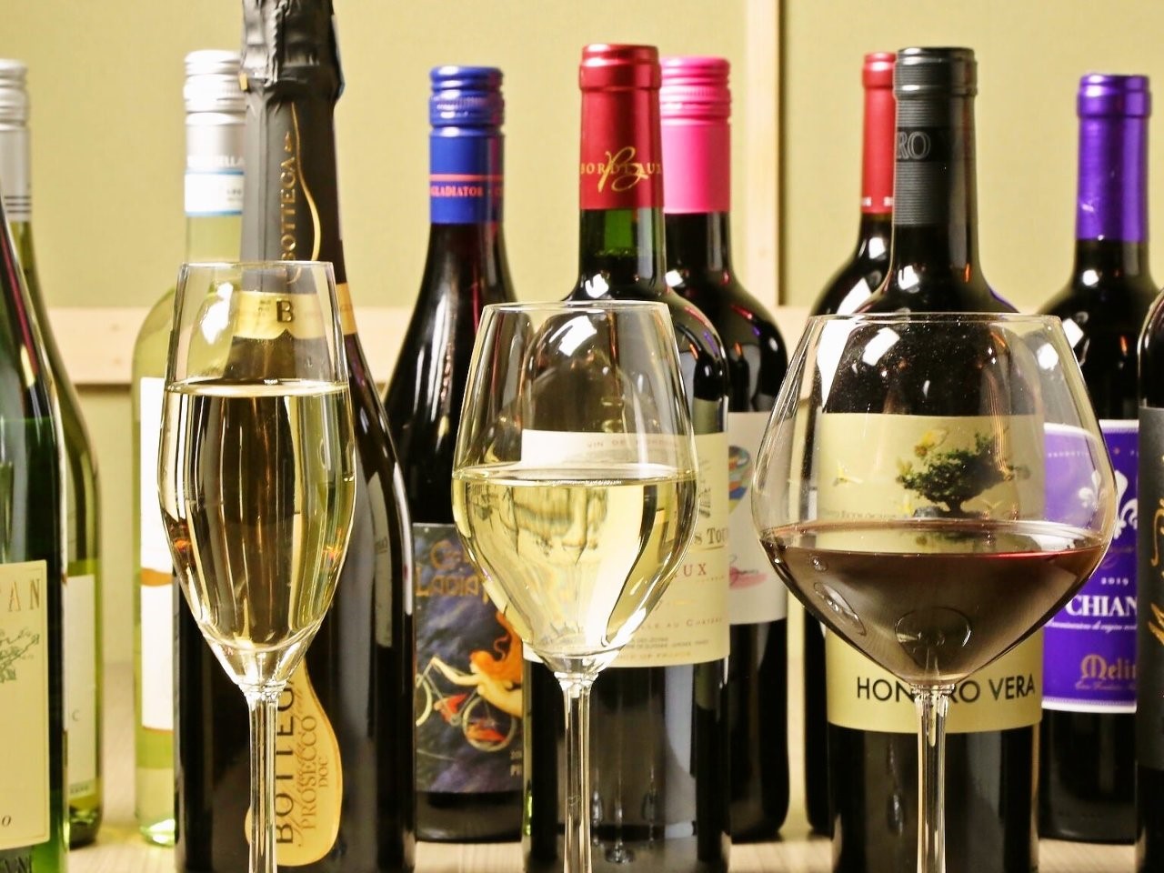 赤白ワイン・スパークリングなど「藁焼き」と「熟成肉」にピッタリなワインの数々を、豊富にご用意しております。自慢の藁焼きや熟成肉をさらに美味しく引き立てるワイン!