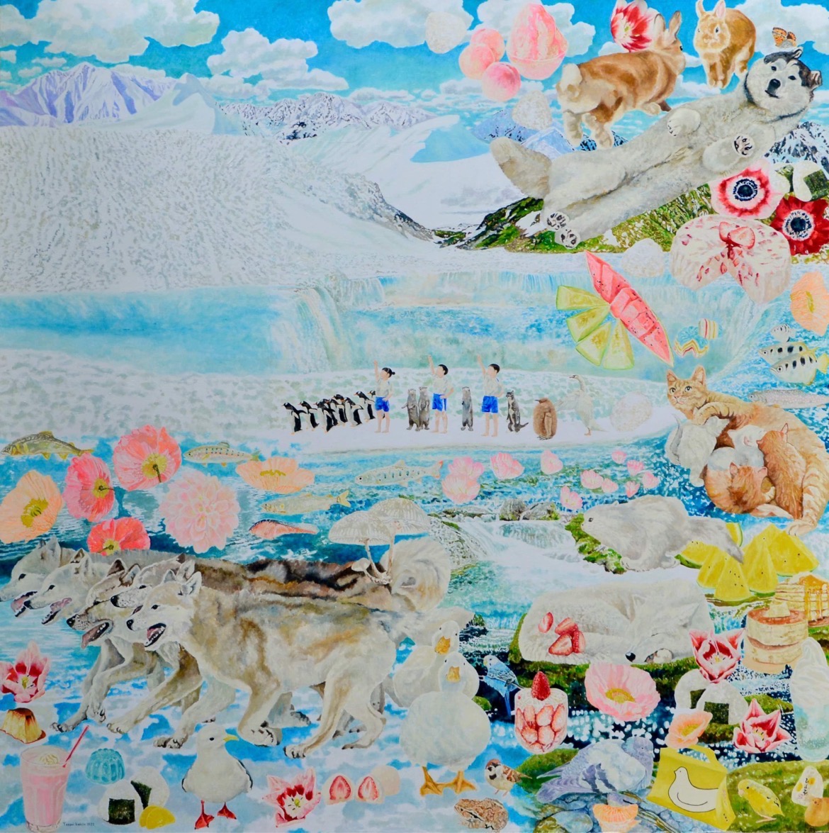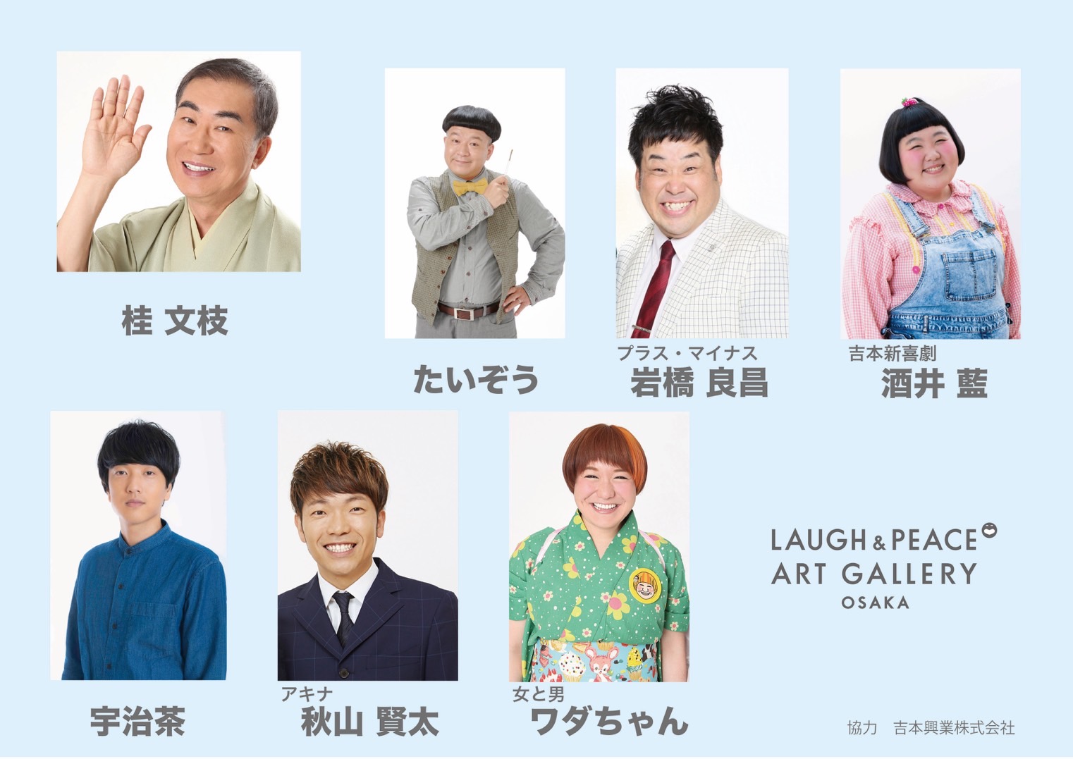 会場にはコシノヒロコ氏を始め、漫画「ブルーピリオド」の山口つばさ氏、LAUGH & PEACE ART GALLERY OSAKAから桂文枝氏、たいぞう氏、プラスマイナス岩橋氏他招待アーティスト約100名(個人所有作品含)と、アーティスト支援企画「超公募展」にて選ばれるアーティスト約30名、総勢約130名の作品群が並びます。