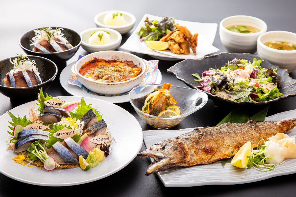 前菜から〆まで、「とろさば」を食べ尽くすなら、鯖料理フルコースの『プレミアムとろさばプラン』がおすすめ!看板料理の「SABAカルテット盛合せ(とろさば造り・とろしめさば・とろさば燻製・とろさば漬け)」や「メガとろさばの塩焼き」など、人気メニューが集結!