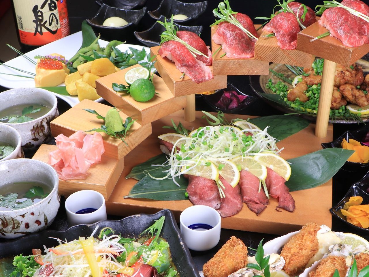 ■【堪能コース】黒毛和牛の握り&牛タンの握り等《全10品》3時間飲み放題付き⇒4,000円