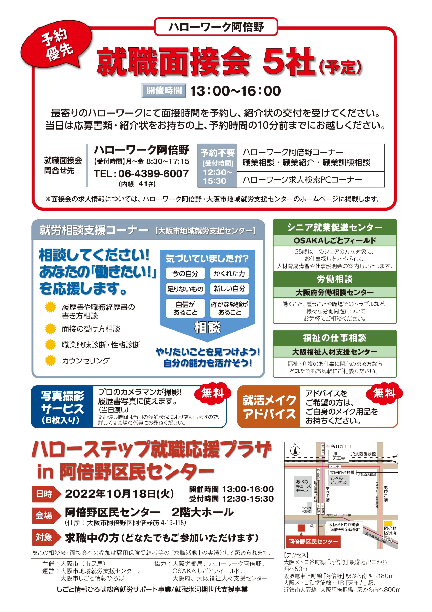書類選考なしで、すぐに面接可能!ハローワーク阿倍野の就職面接会には6社が参加!