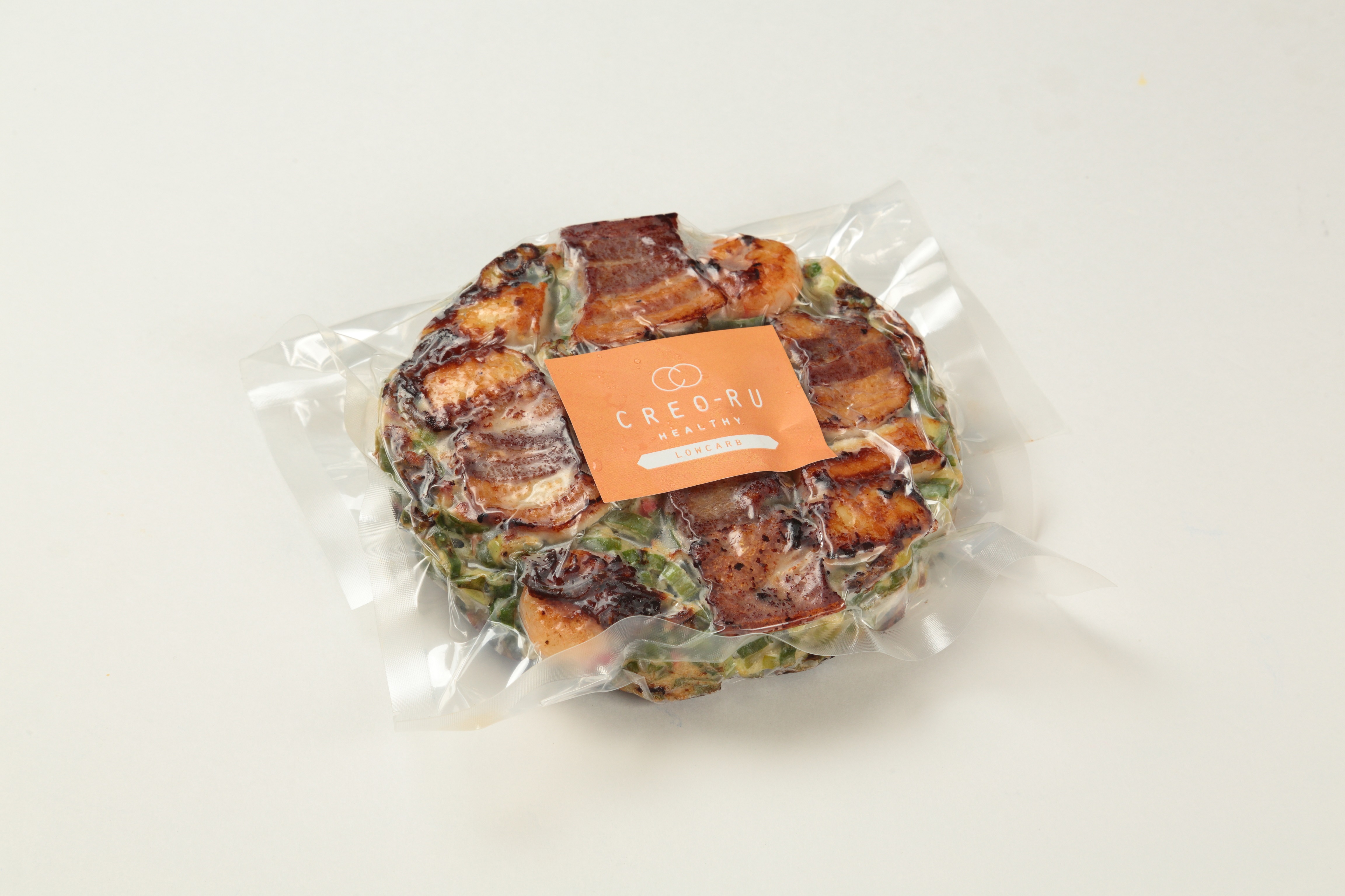 原材料:白菜、豚肉、鶏卵、低糖質お好み焼き粉、大葉、紅生姜、青ねぎ、おから粉、ユーグレナグラシリス粉末、ヤエヤマクロレラ粉末、エリストール/加工でんぷん、甘味料(ステビア)、増粘剤(グアーガム、キサンタンガム)、調味料(アミノ酸等)