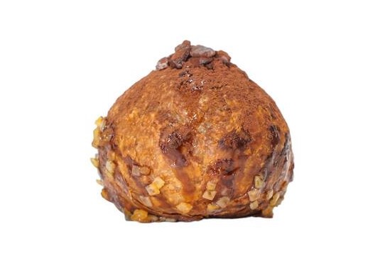 砂糖と北海道産純生クリームで作る自家製キャラメルペースト。クルミとヘーゼルナッツを深煎りローストし、キャラメリゼしたナッツを飾りに。