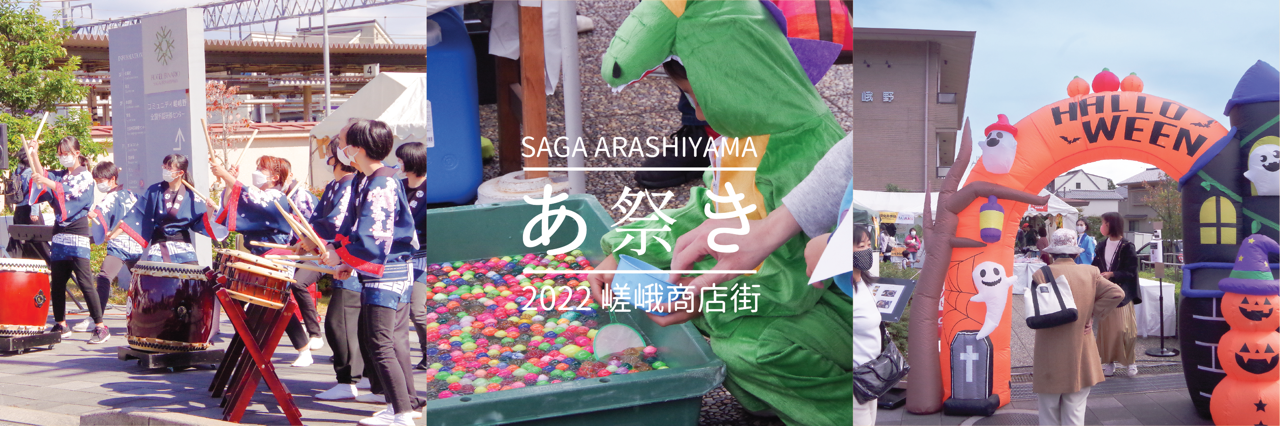 観光が盛んである嵯峨・嵐山地域に位置する嵯峨商店街(嵯峨商店会会長 加藤就一)は、現在、70件の店舗が加盟。地域密着型商店街を掲げ、コミュニティ交流を促進する試みとして、10月22日(土)・23日(日)の午前11時から午後5時まで「2022嵯峨嵐山秋祭りHAPPYHALLOWEEN」が開催される。JR嵯峨嵐山駅前ビナリオ広場(右京区嵯峨天龍寺車道町)を起点に、地域事業者が参加するマルシェ・縁日・台湾グルメ祭・嵯峨音楽祭の他、商店街を周遊するスタンプラリー等が実施予定である。秋祭りの開催で、観光客と地域の交流のみならず、コロナ禍で希薄化した地域コミュニティーの基盤強化を図ることが目的だ。
