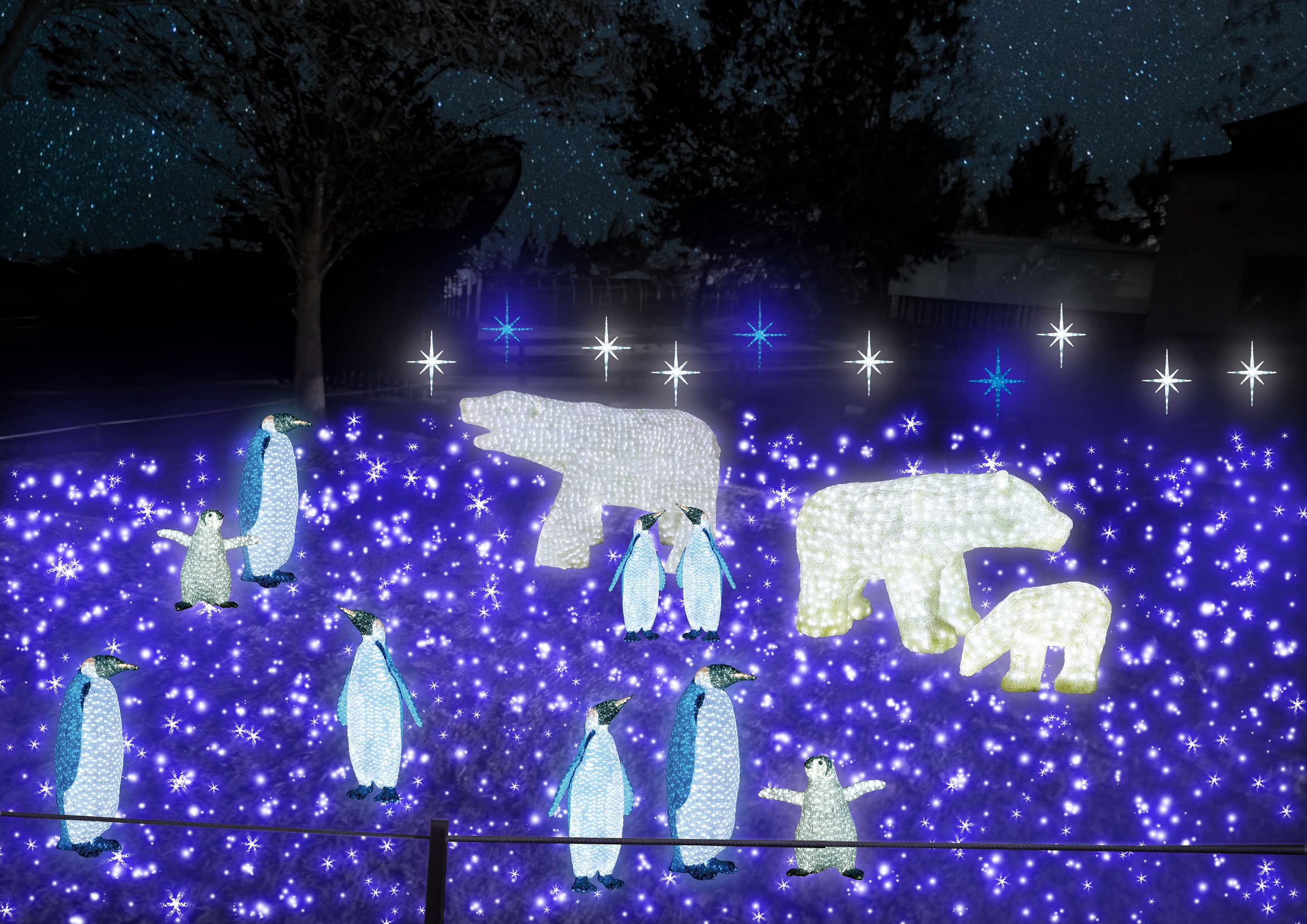 極寒の地に生息するシロクマやペンギンなどのイルミネーションをお楽しみいただけます。
