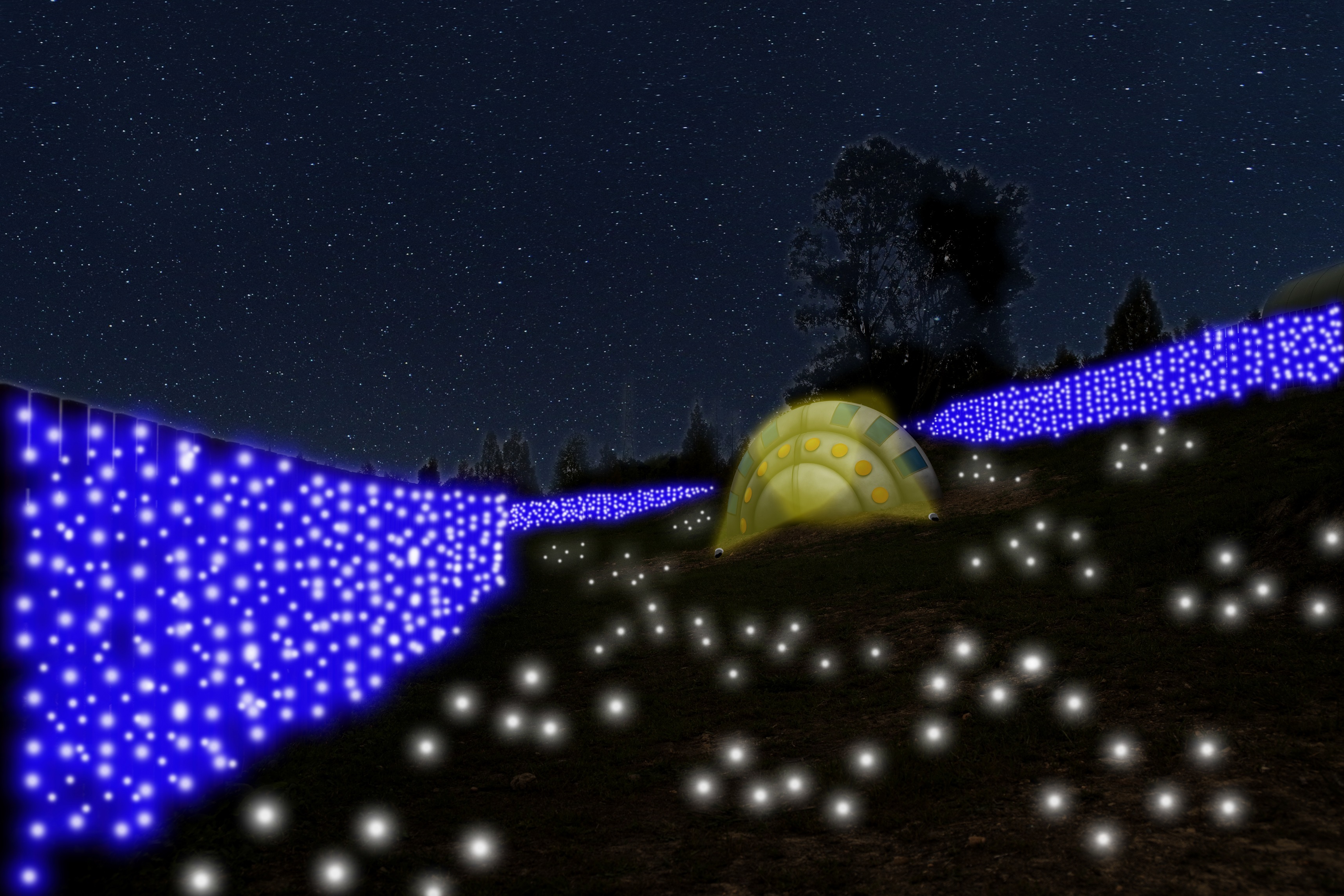 丘の上から流れる川をイルミネーションで再現、自然との調和をお楽しみください。