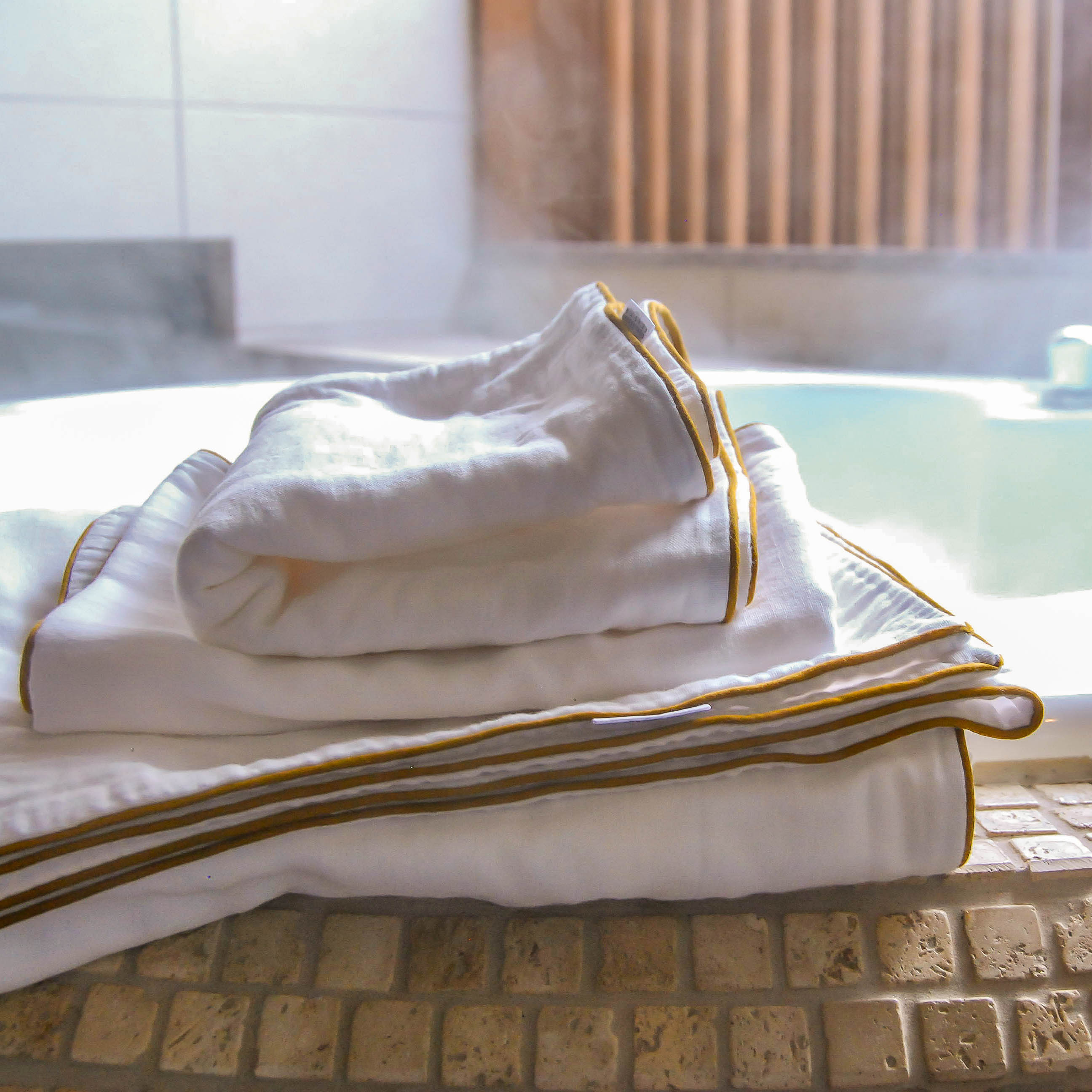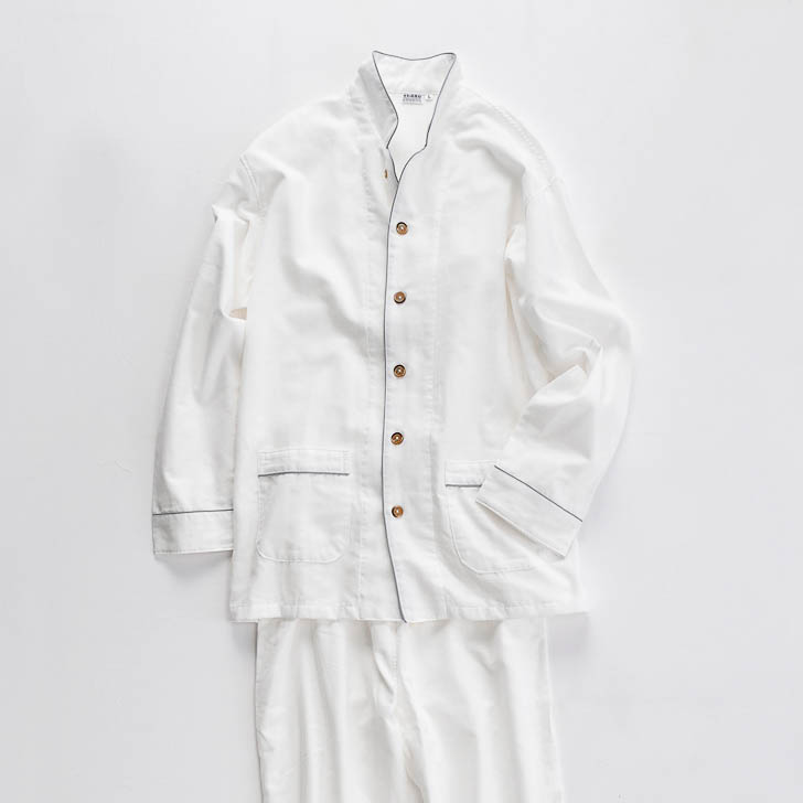 空気をまとう着心地を実現した、安心安全なホームリネンのシリーズです。現在では40分程度で終えてしまう晒(さらし)という工程を日本の昔ながらの和晒(わざらし)という伝統製法でコットン本来の力を引き出し、乳幼児や肌が敏感な方々にも安心安全な素材に仕上げました。蒸し暑い夏と底冷えの冬という、京都特有の季節でも快適に過ごせるように和晒した生地を丁寧な手作業で幾重にも重ねて裁断と縫製を行うホームリネンアイテムです。現在、パジャマやベッドシーツ・布団カバー・タオルアイテム・ベビーアイテムなどを展開しています。