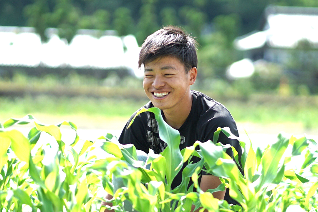 朝来市出身。高校を中退後、生まれ育った地域が「岩津ねぎ」の本場であり、地域の方々が農地の借り手を探していたことから農業をすることを決意。2020年に市の制度を利用し、農業研修を開始。独立を1年後に控えた現在では、岩津ねぎ、とうも ろこし、黒枝豆など年間約15品目の野菜を栽培中。自社直売所を持ち直売所で野菜を対面販売しています。