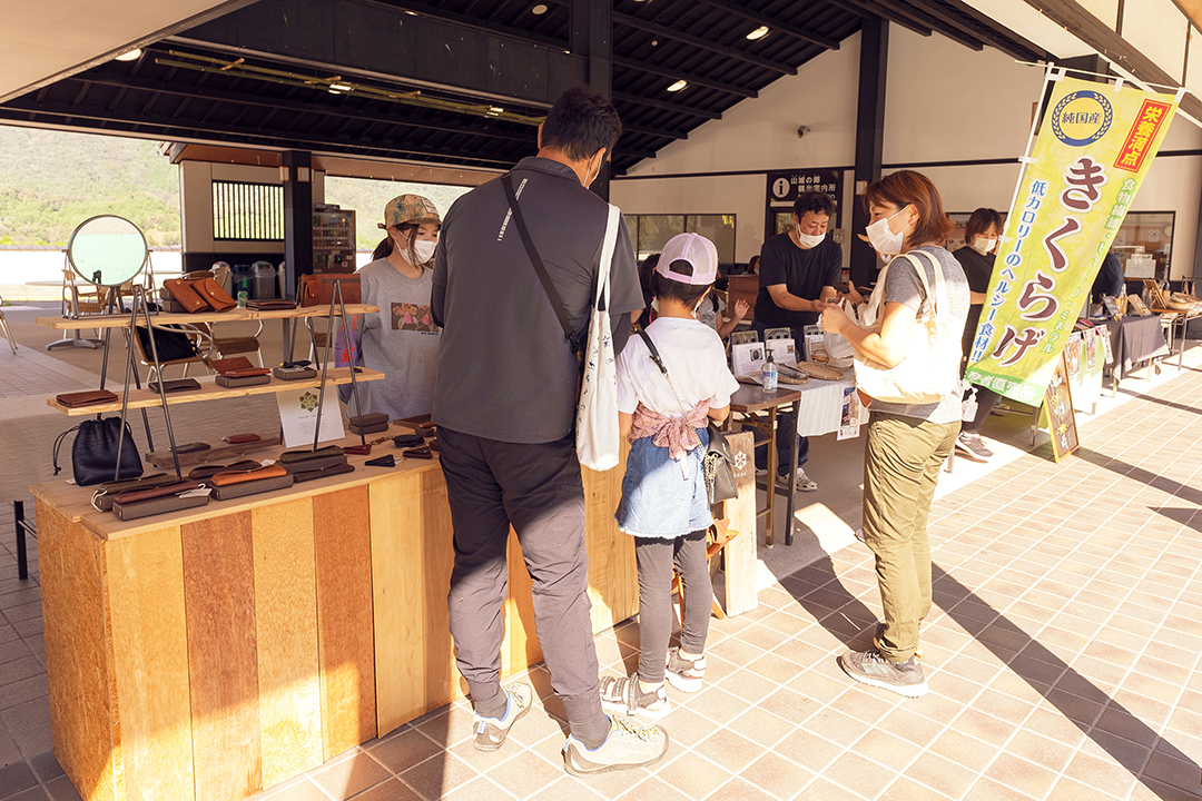 出店者 : 遠坂きのこ園、ミツバチファームにしむら養蜂、篠や、haaki Leather、cafe dailyshipなど約10店舗