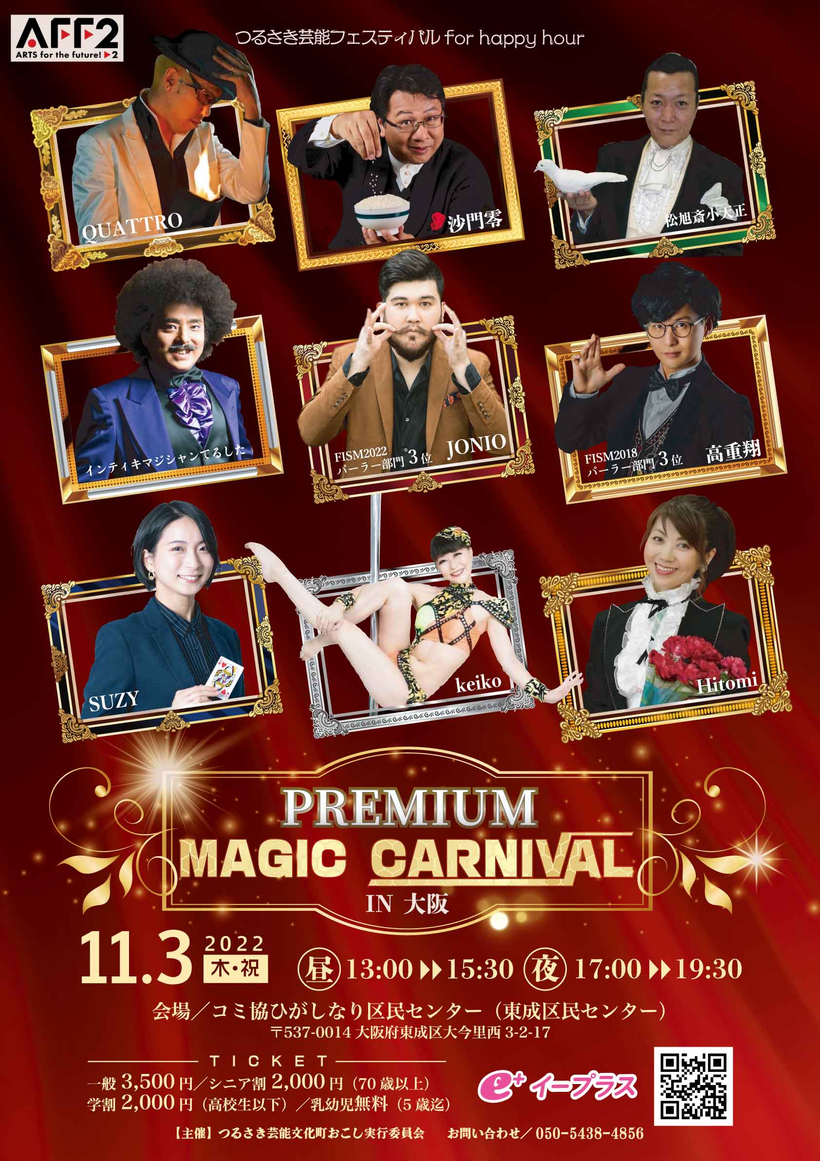 つるさき芸能文化町おこし実行委員会(所在地:大分県大分市、代表:馬場貴浩)は、「つるさき芸能フェスティバル for happy hour 〜PREMIUM MAGIC CARNIVAL IN大阪〜」を2022年11月3日(木・祝)、にコミ協ひがしなり区民センター(東成区民センター)にて開催いたします。